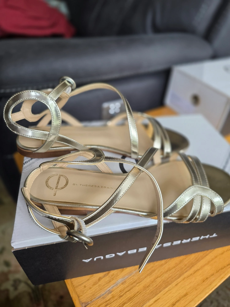 These are a pair of Chelsea Paris Amor sandals in gold. They're in unworn condition and come with the box. These retail for $320! Can also be picked up in Vancouver.