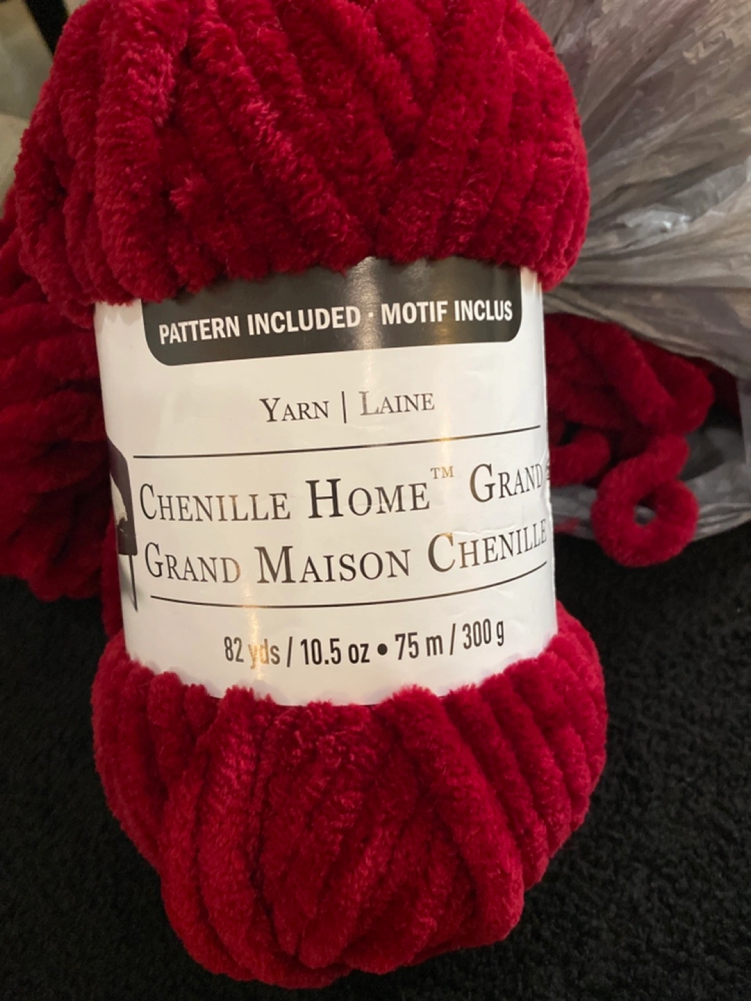 I have some Chenille Home Grand yarn for sale in a lovely burgundy colour! Perfect for your next knitting project. Hand knitting blanket started. A great project for yourself or to teach your kids. Each ball is 82 yards / 10.5 oz / 75 m / 300 g. Machine wash cold and tumble dry on low