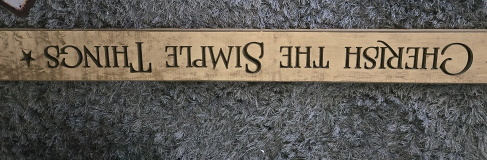 A lovely wooden sign with the phrase 'Cherish The Simple Things' engraved on it. It would look great in any room of your home