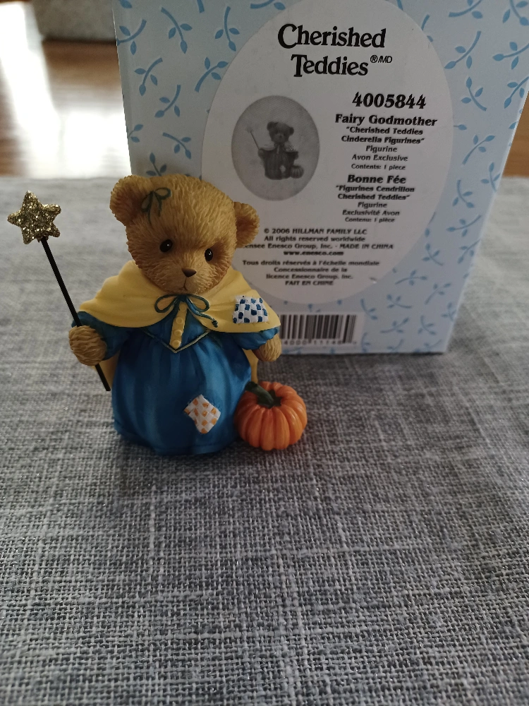 2006 Cherished Teddies figurine - Fairy Godmother, #4005844. It's part of the Cinderella Figurines collection. This Avon exclusive includes the figurine and comes with its original box!