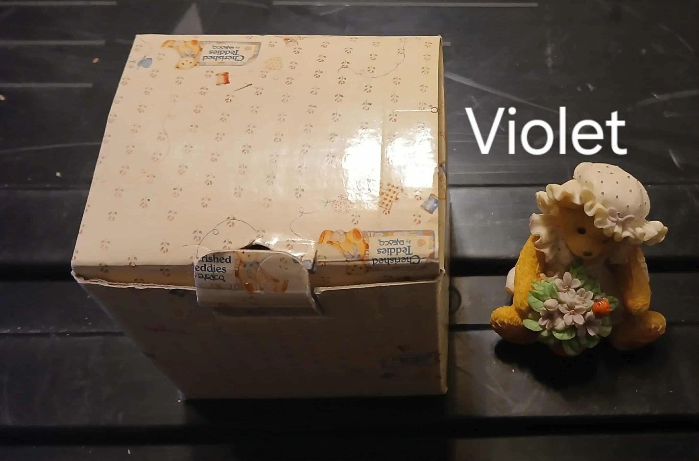 Selling a sweet Cherished Teddies figurine named Violet! It comes with its original box, making it a perfect addition to any collection or a thoughtful gift for a loved one