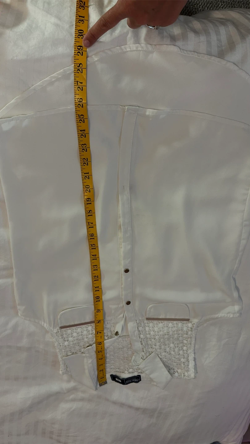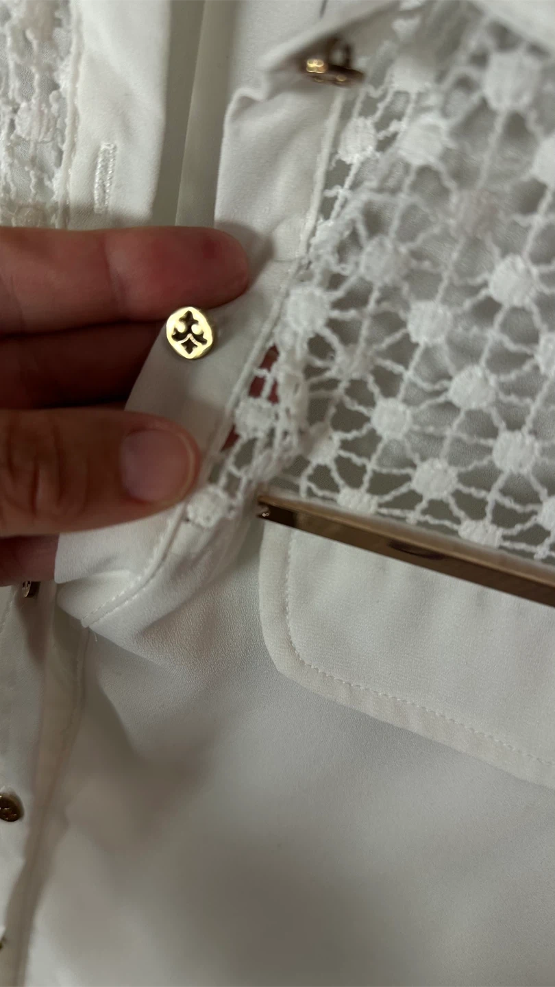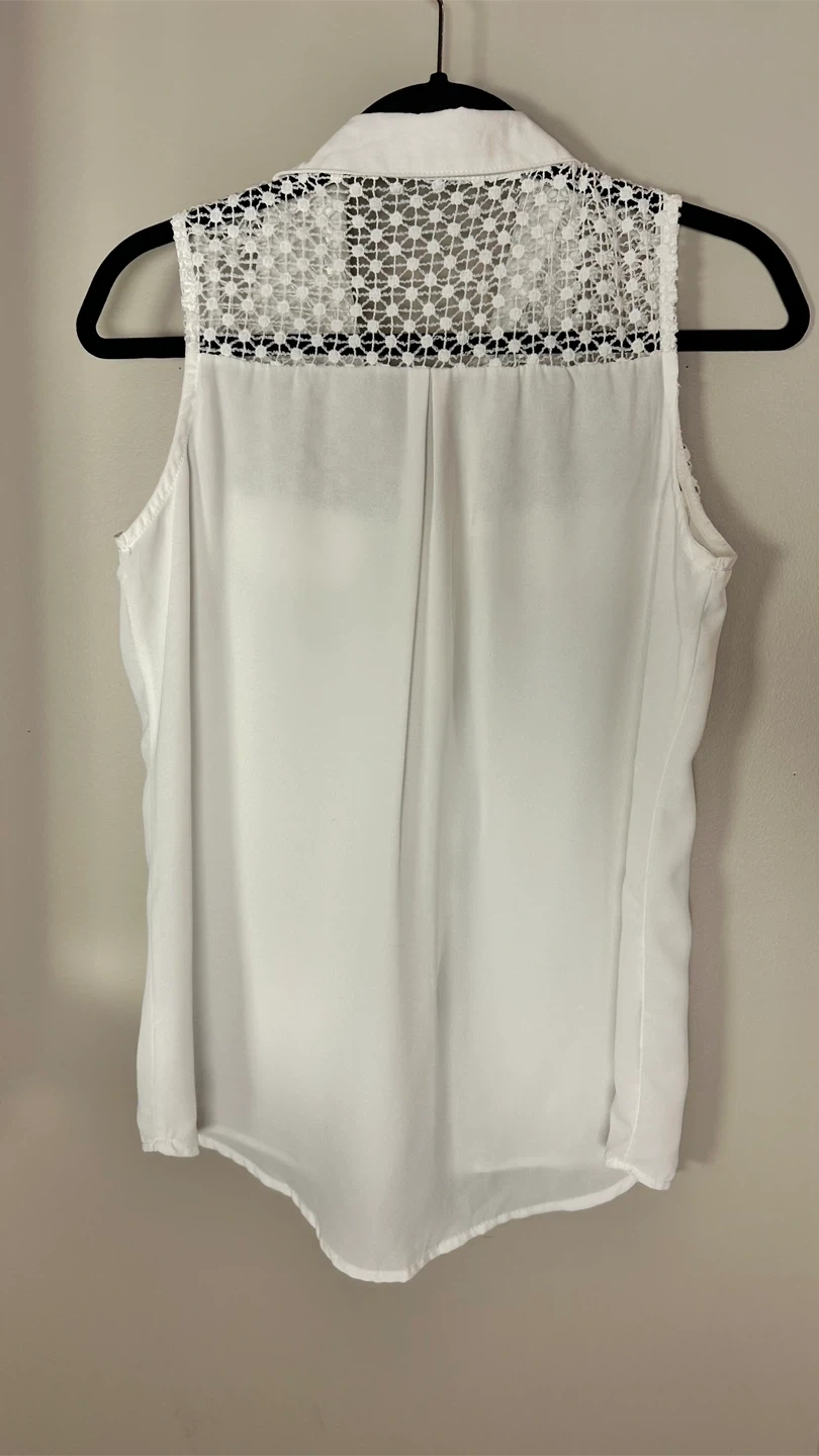 Selling a cute white sleeveless top from Cherokee! It has a unique lace detail on the upper part and gold accents on the pockets. Size CH.