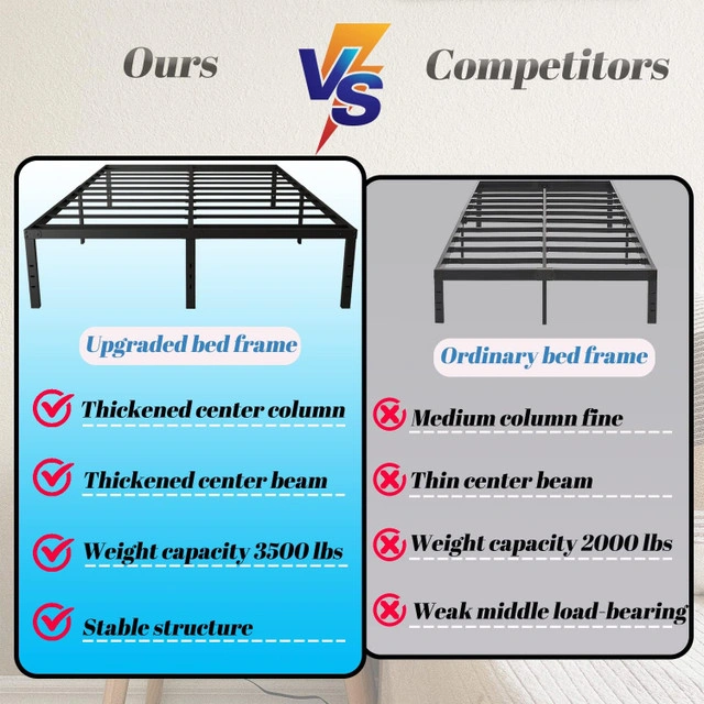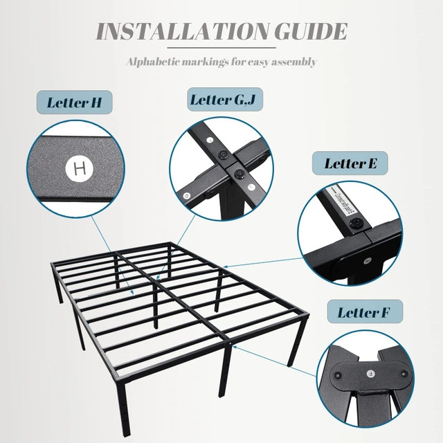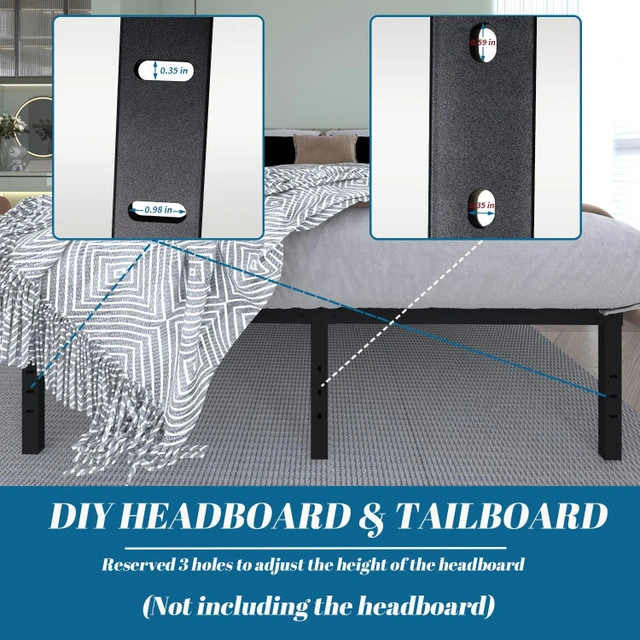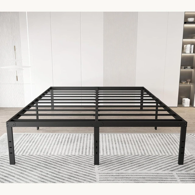 Brand New bed frame. It comes unassembled in original box with all manufacturer parts ,hardware, and tools for easy assembly. **Only the bed frame for sale. Mattress not included and sold separately. Retails at Amazon for $352 ($312 + tax). Save your money. Pickup from south London. I can deliver in London for an extra fee. Chezisam King Size Metal Bed Frame 18 "high Heavy Duty Platform Bed Can Support 3500lbs with Under Bed Storage Space Easy Assembly Non-Slip and Noiseless Black Details: Size: King Brand: Chezisam Model#: 40-20-18-K(King) Material: Alloy Steel Product Dimensions79.5"L x 75.5"W x 18"H Style: 18 inch Special Feature: No Box Spring Needed, Under Bed Storage, Sturdy, Heavy Duty, Noiseless Features: STABLE STRUCTURE: The 2023 new King bed frame is made of premium steel with 9 bed support legs and can support up to 3500 pounds. Bed support feet have protective covers to ensure no noise, non-slip, protect your floor or carpet, enjoy every quiet good night. UNDER-BED STORAGE SPACE: The black metal bed frame measures 79.5"L * 75.5"W * 18"H. The under- bed storage space is 16" high, and the large volume space can store all your personal belongings, giving you a neat bedroom. EASY TO ASSEMBLE: The Heavy duty King bed frame has a foldable frame design, each part is labeled in letters, and the package comes with the bed frame instruction. You can assemble a comfortable bed within 20 minutes. NO BOX SPRING NEEDED: The mattress can be placed directly on the modern bed frame, no bulky box spring needed, easy to disassemble and assemble. (Note: The bed frame platform does not include a headboard, but the support legs of the bed frame with a headboard end all have 3 reserved holes for you to DIY your own headboard). STURDY & DURABLE: Detachable steel slat bed frame, strong and stable, covered with metal coating, prevent rust and corrosion, long lasting, can be used for decades.