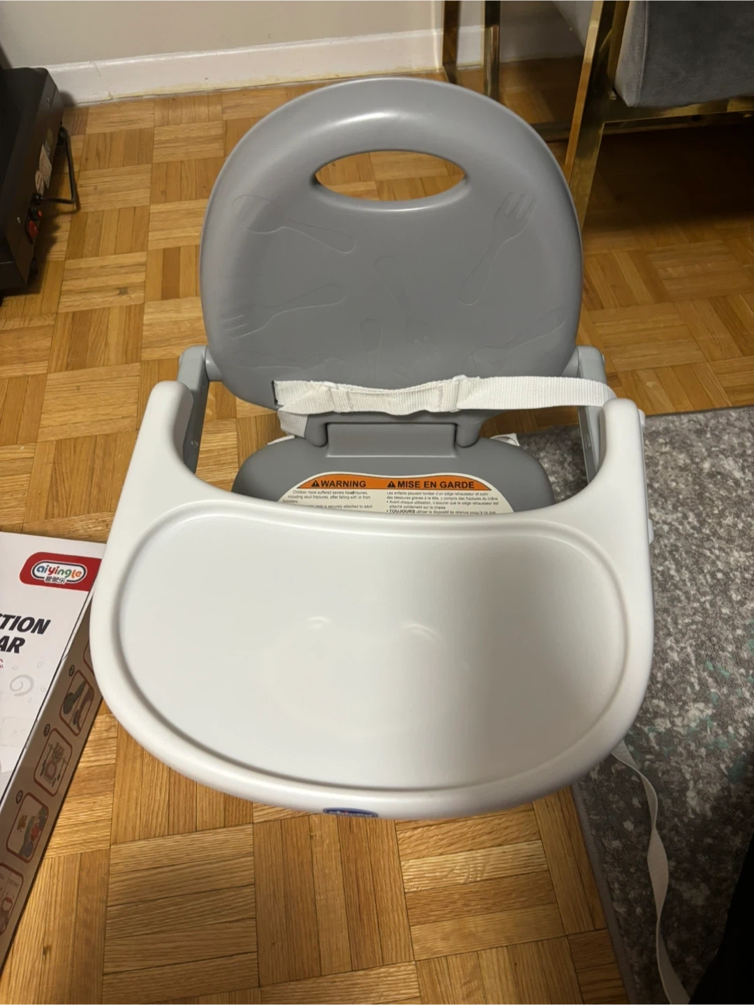 Selling a Chicco Caddy Hook On Chair in grey! This chair is perfect for feeding time, whether you're at home or travelling. It easily hooks onto most tables, making it super convenient. It's in great condition and ready for a new home!