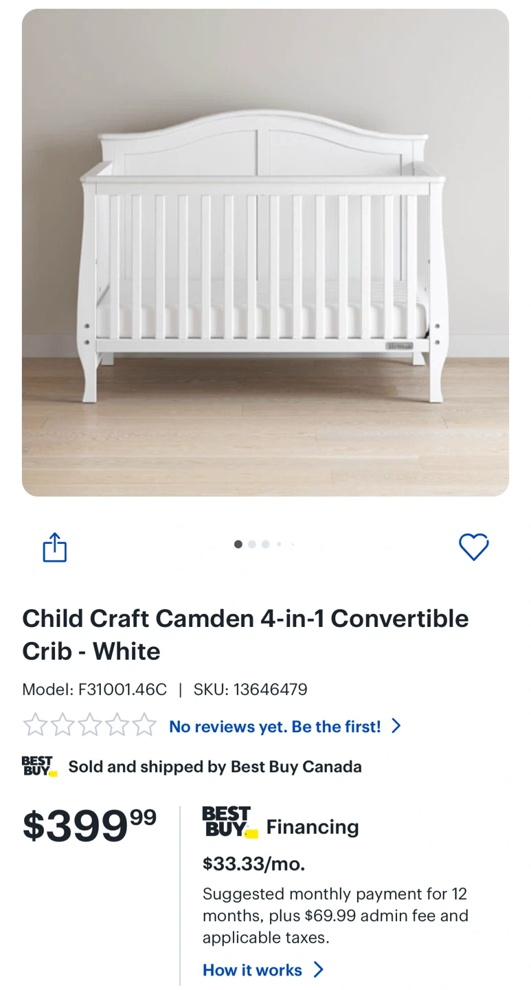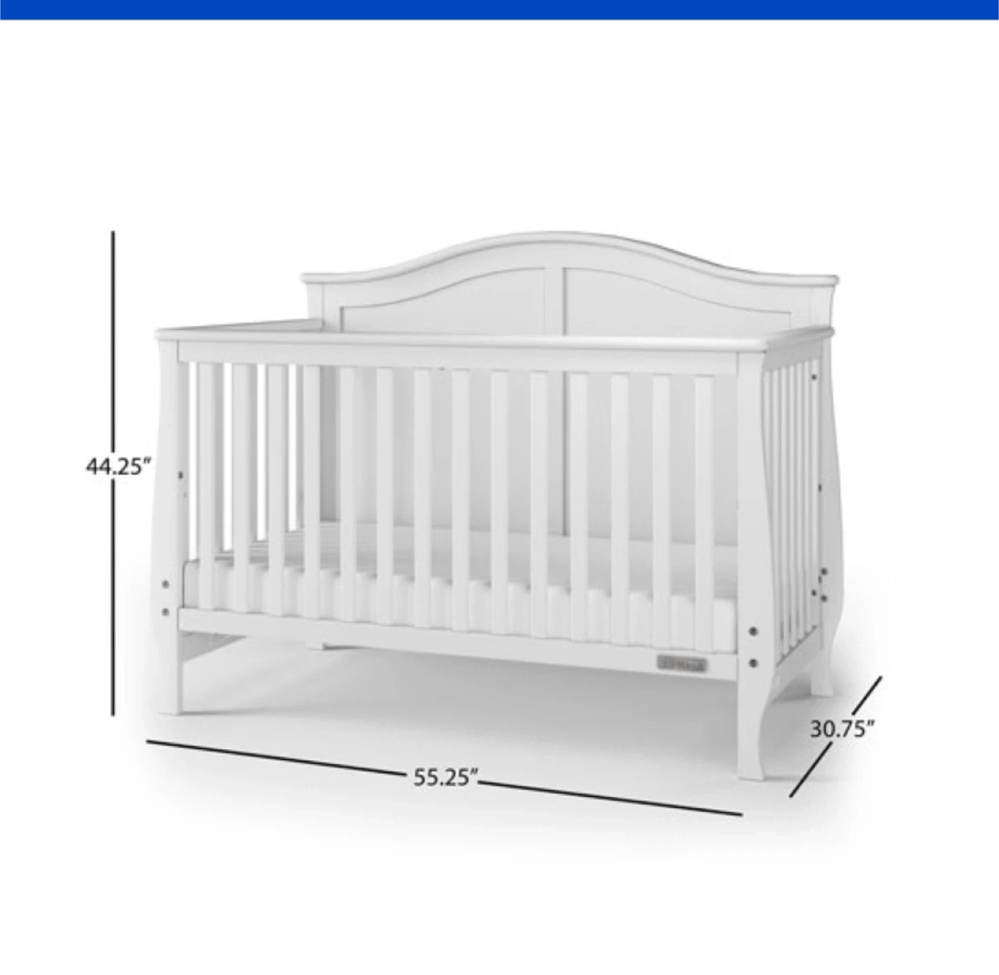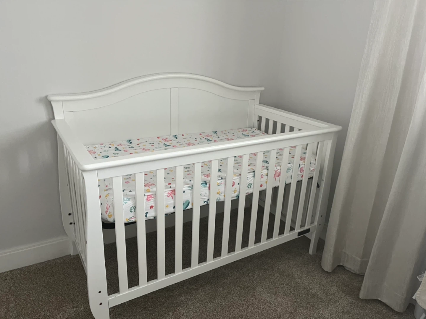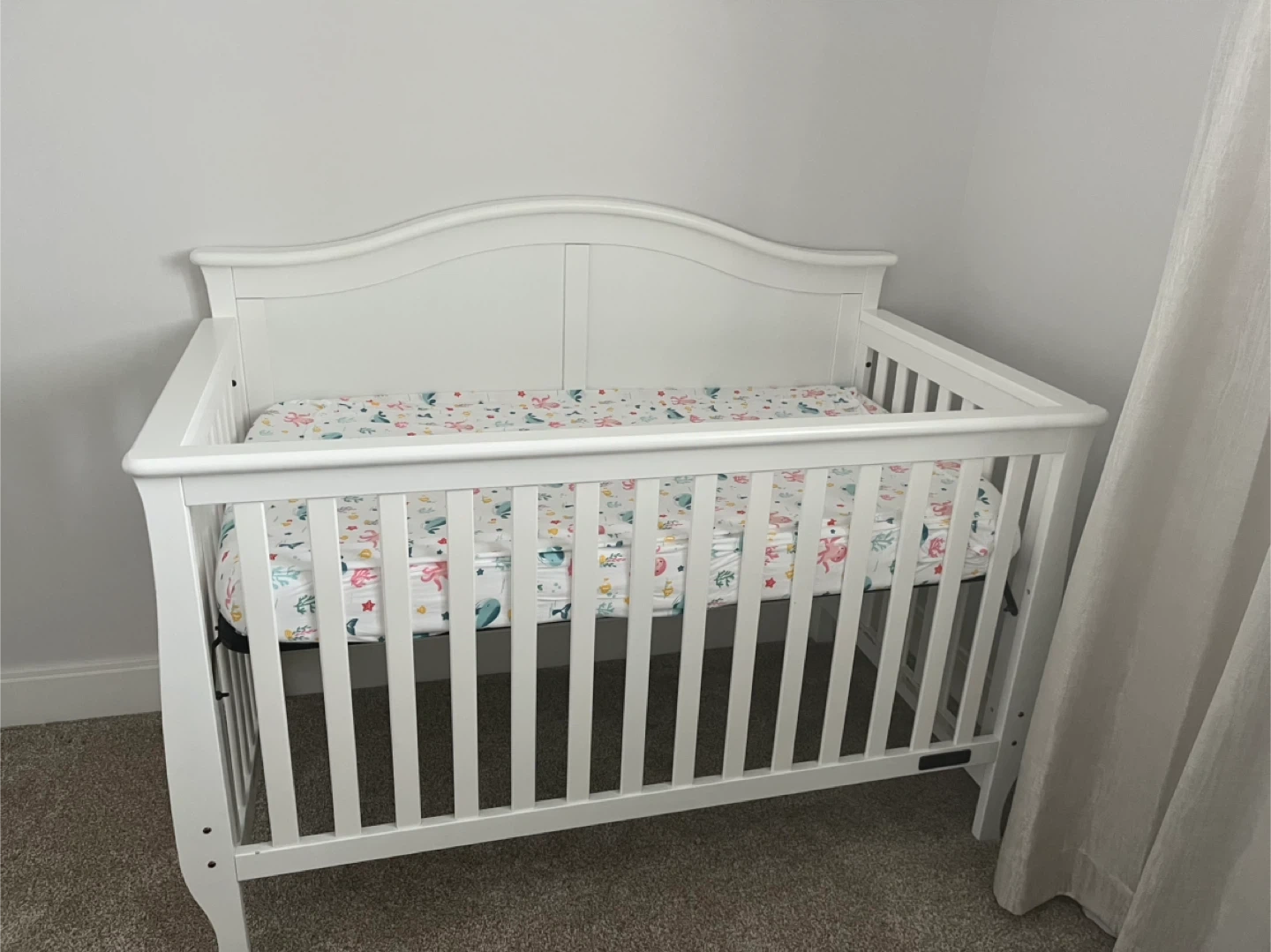 Selling a white Child Craft Camden 4-in-1 convertible crib! This crib measures 44.25" in height, 55.25" in length, and 30.75" in width. Originally bought for $399.99 No mattress included. No scratch almost like brand new