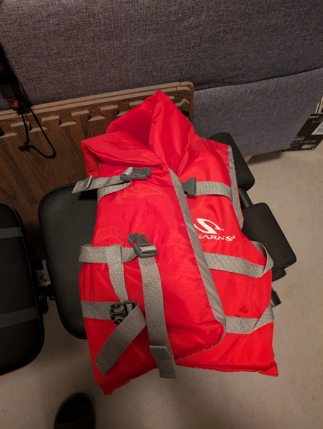 Selling a red Stearns life jacket. It's in good condition and ready for your next water adventure