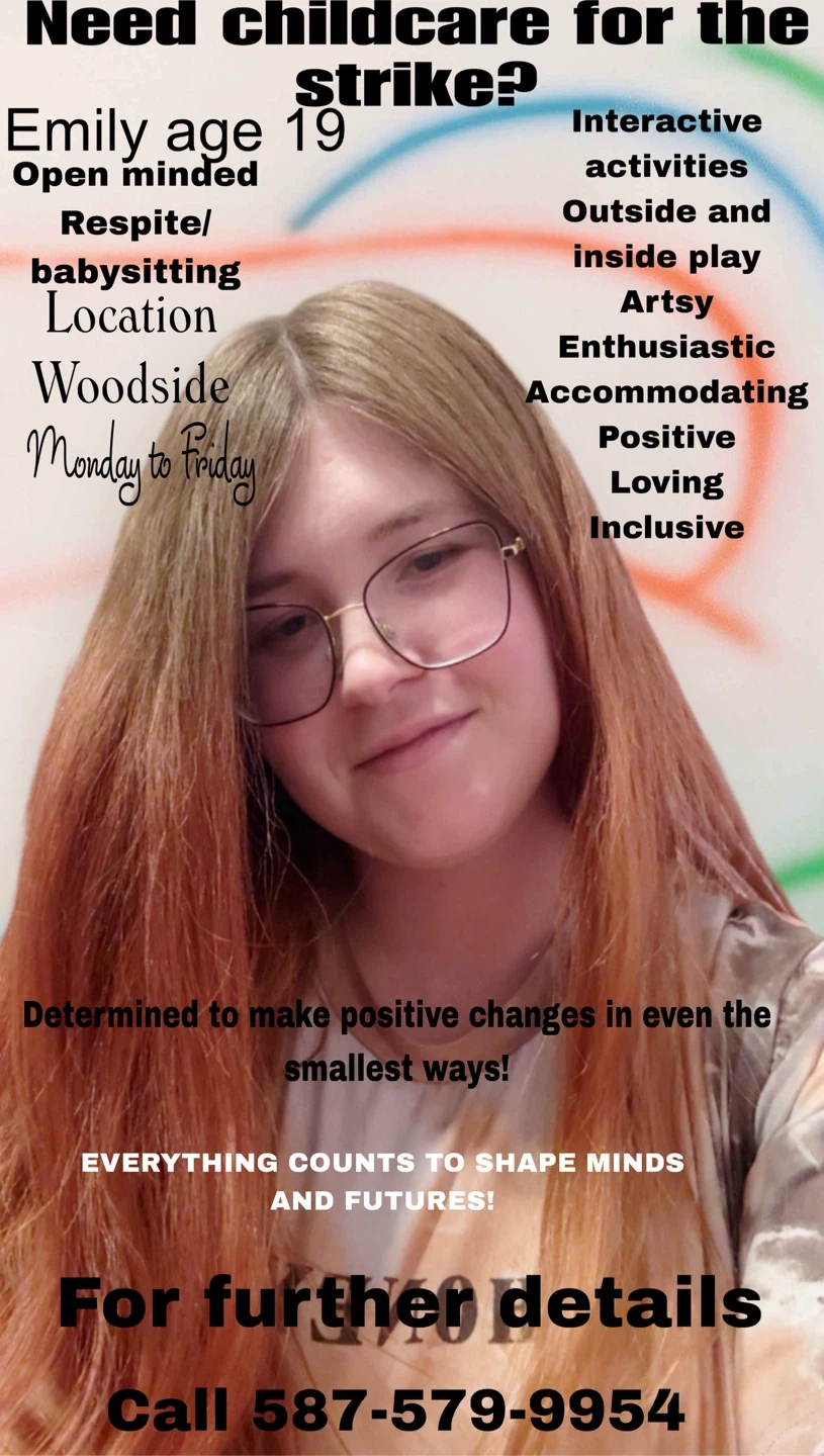 During the strike, it can be hard for childcare but for your luck I’m here! call the number on screen for details!❤️