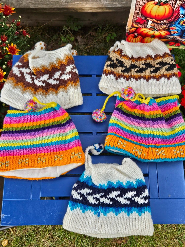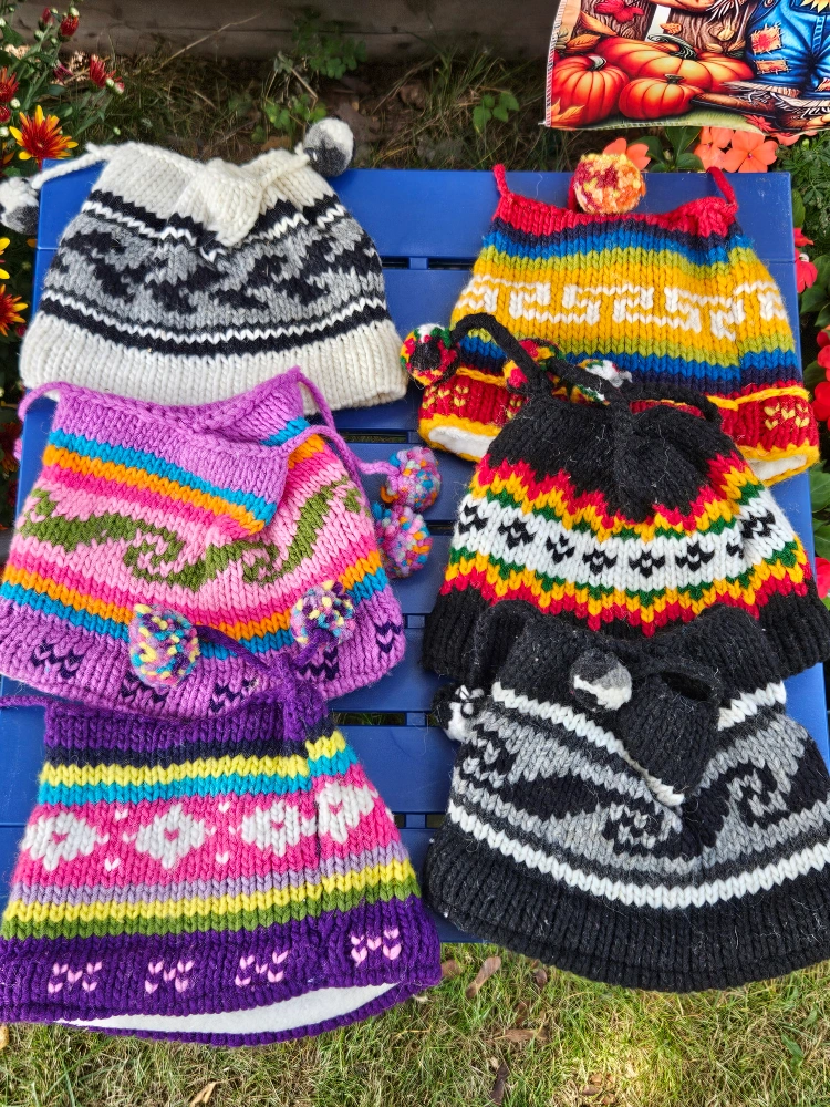 I'm selling a collection of hand-knitted wool hats! They come in a variety of colours and patterns. These hats are perfect for keeping warm during the colder months. Each hat is unique and has a charming, handmade feel. They are in great condition and ready to be worn... age 4-6... must pick up, no holds, cash