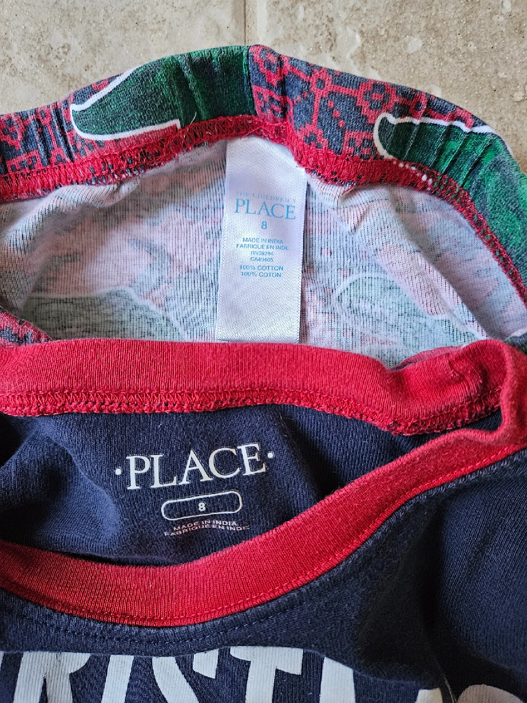 Children's Place Size 8 long sleeve Christmas pajamas. They are snug fit and made from 100% cotton. In good used condition - some wash wear/colour fading. No rips or stains. Milton pick up, cash only, no holds, price is as posted.