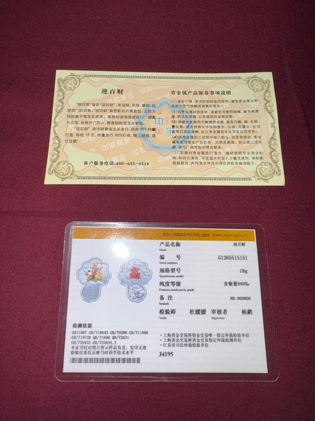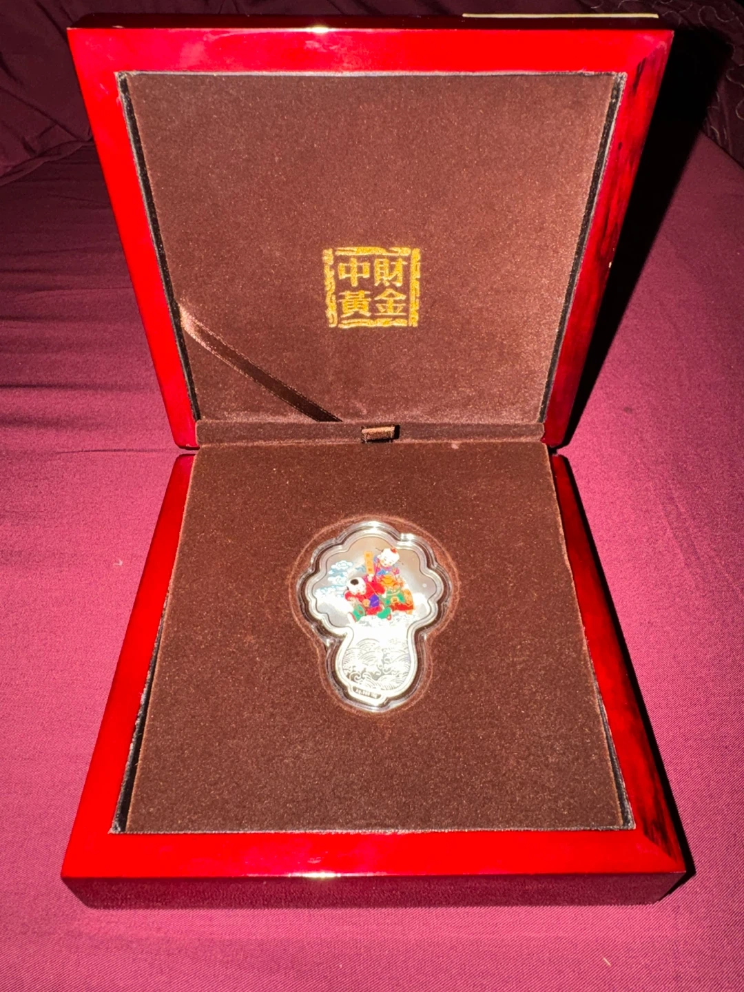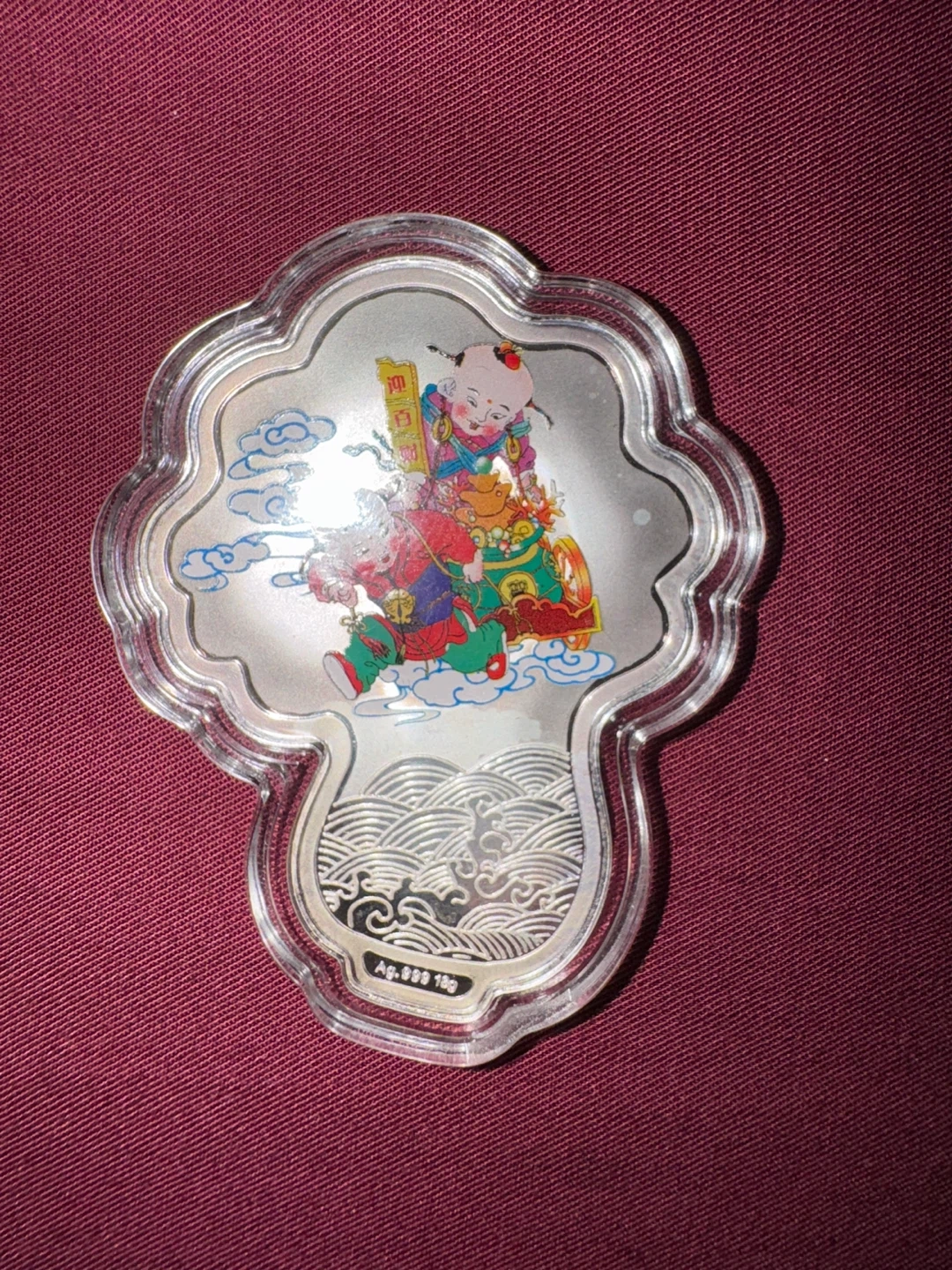 *** If you seeing this add, it’s Available” ***. Yin Bai Cai" is a homophone for "Ying Bai Cai," meaning "welcoming wealth," "making fortune," "earning wealth," and "bringing in wealth." The "Ying Bai Cai" symbol is inspired by the shape of a cabbage. The front depicts a fortune-bringing boy driving a treasure chariot, symbolizing the flow of wealth into the home. The back depicts ingots and gold coins opening the door, symbolizing the arrival of wealth and family happiness.