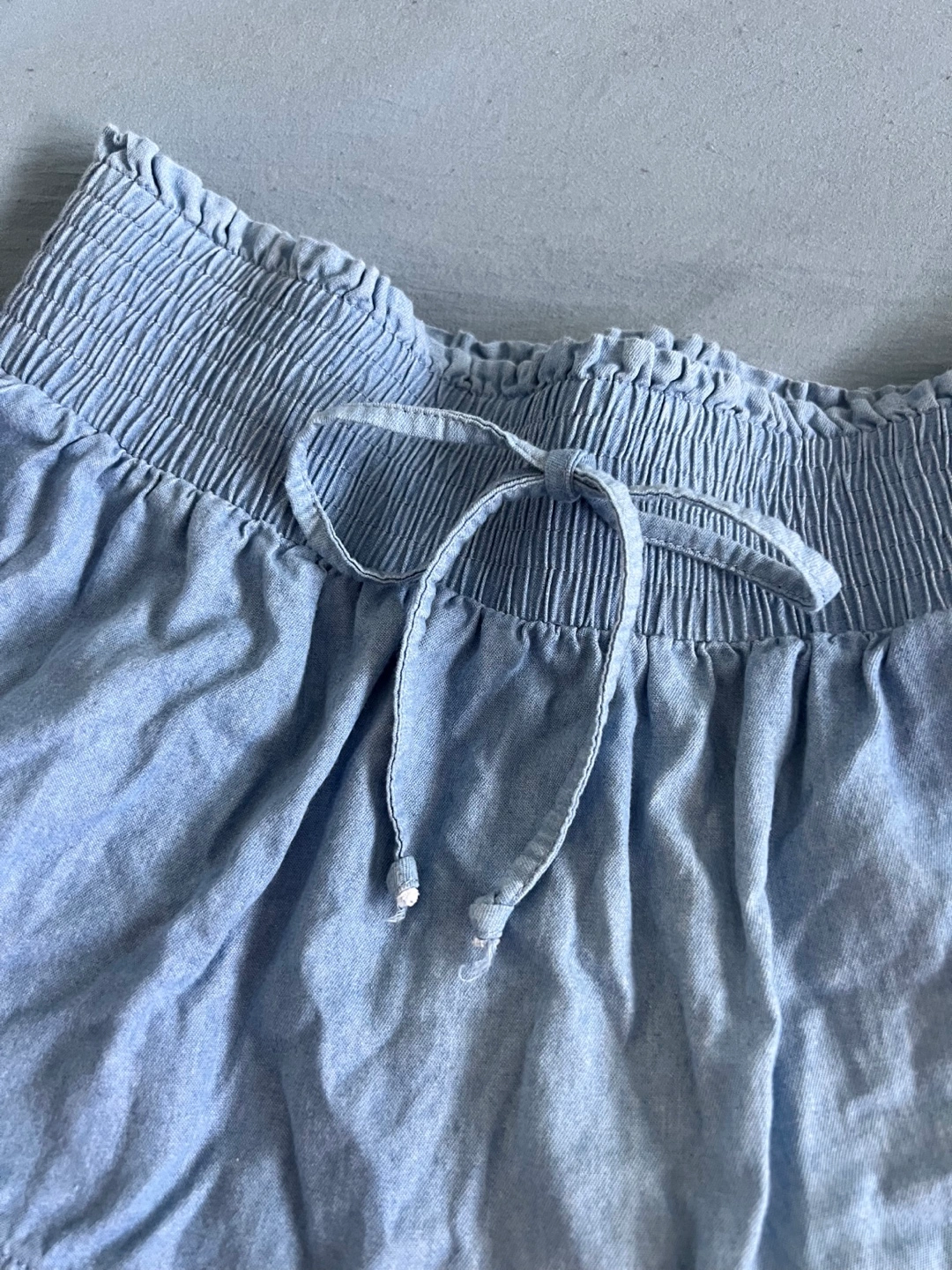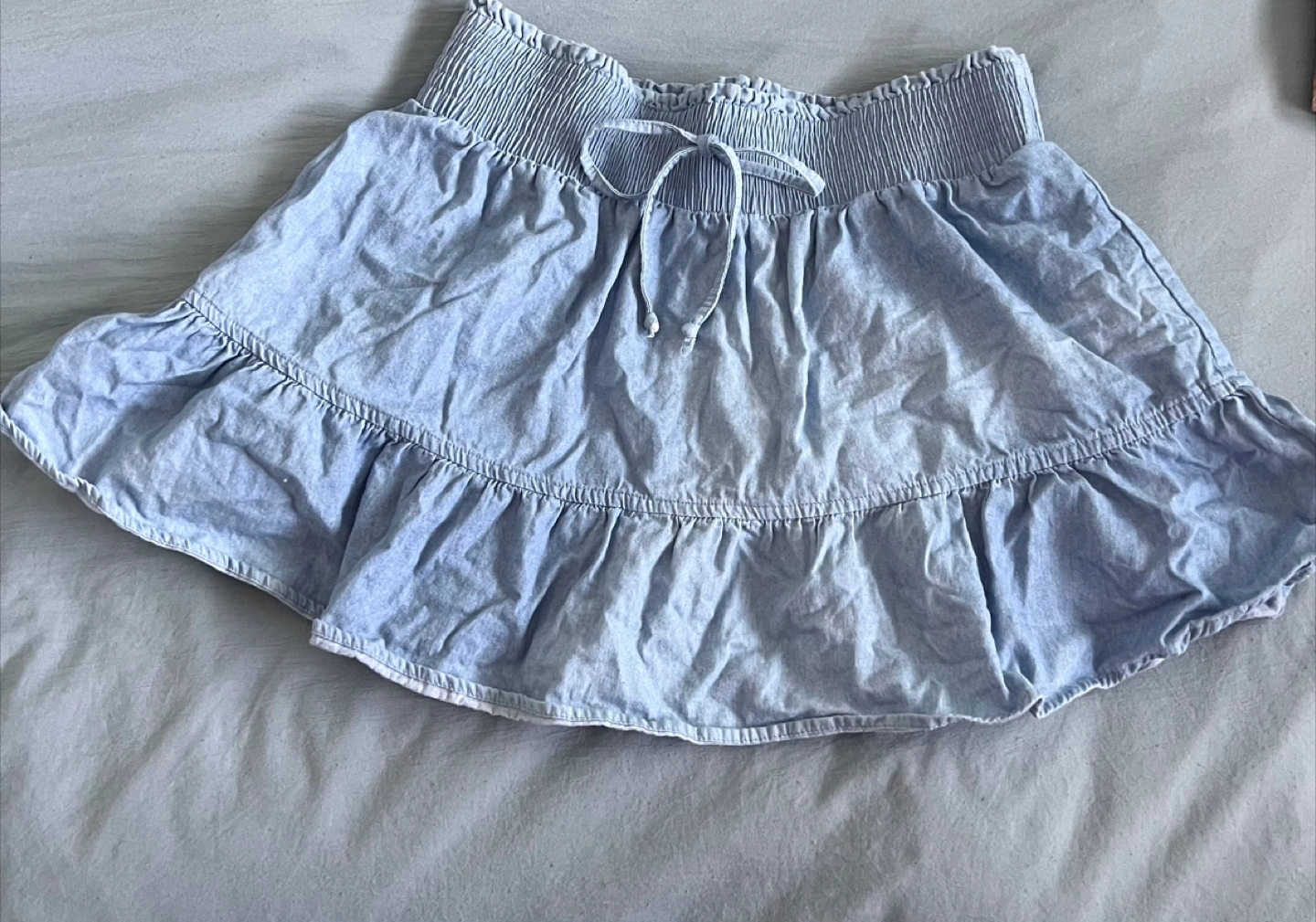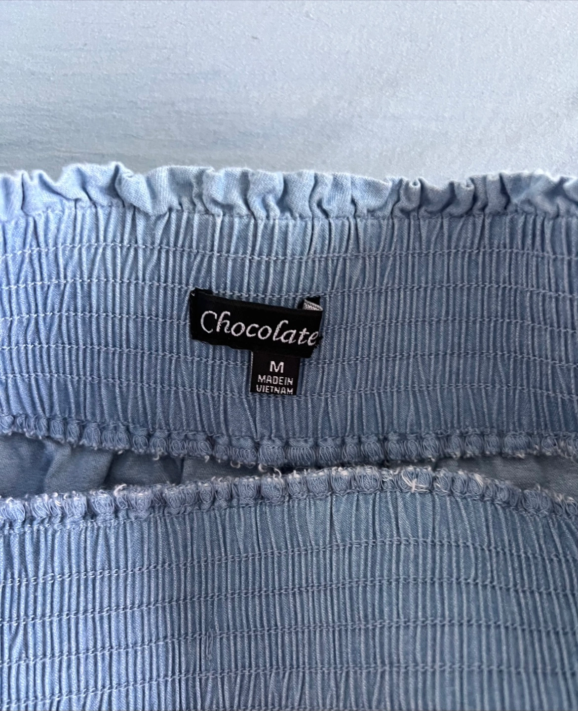Cute light blue skirt from Chocolate in size medium! It's in great condition and features a comfortable elastic waistband with a drawstring tie.