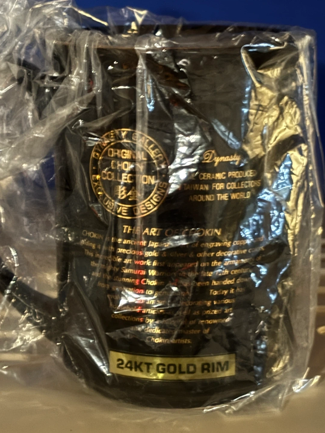 Selling two brand new Chokin mugs in black and white celebrating a 50th anniversary! The made in Japan mugs features intricate engravings and 24kt gold rims. It comes in its original box, making it a perfect gift or collectible item!