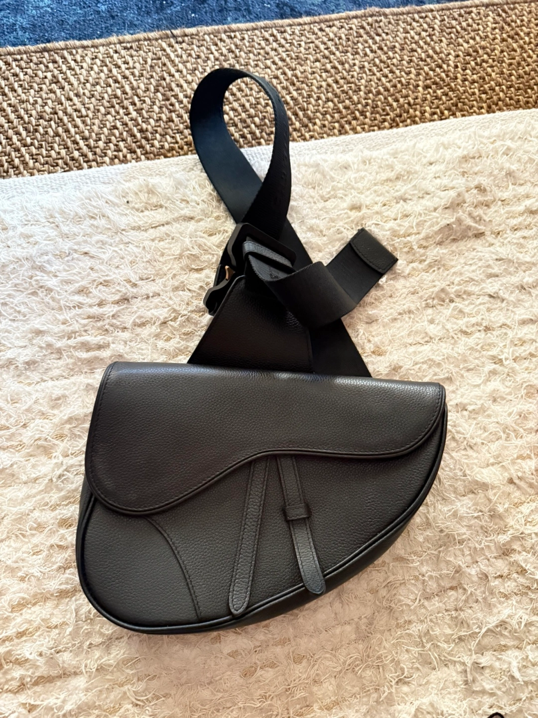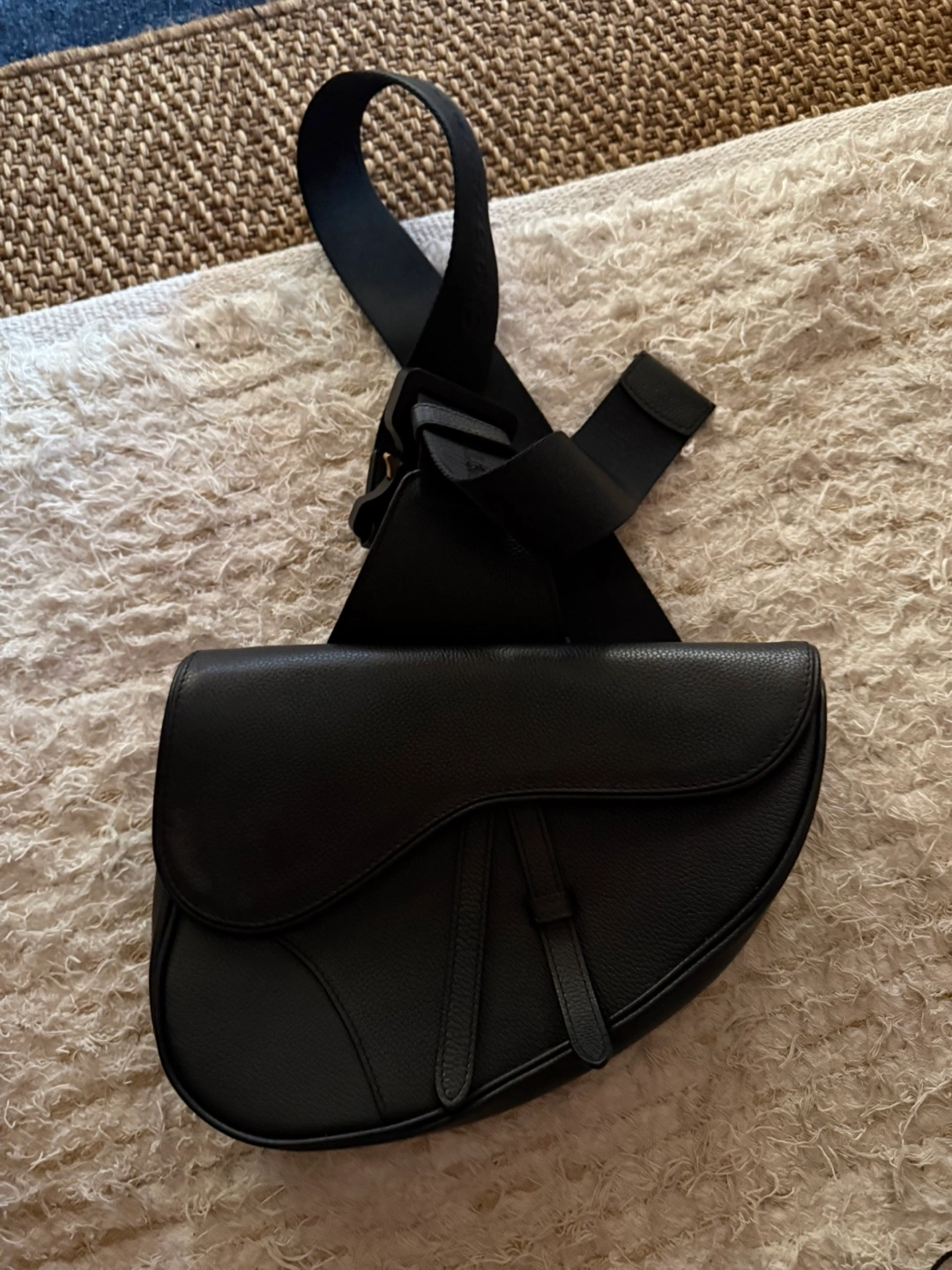 Selling a Christian Dior black saddle bag. It's in great condition and a stylish accessory to add to your wardrobe! Perfect for carrying your essentials while keeping a chic look