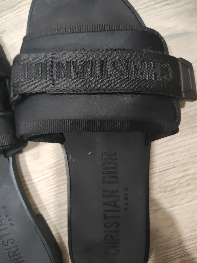 Selling a pair of Christian Dior black slides. They are in great condition and feature the classic Dior logo on the strap. Perfect for summer!