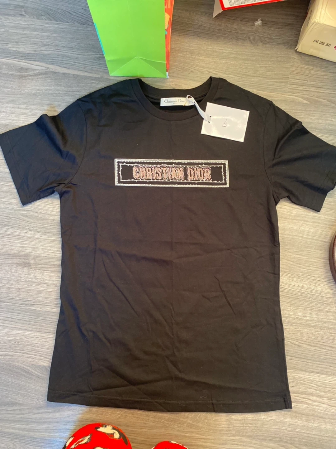 Selling a Christian Dior black t-shirt! It has the Christian Dior logo beaded on the front. Perfect for adding a touch of luxury to your wardrobe