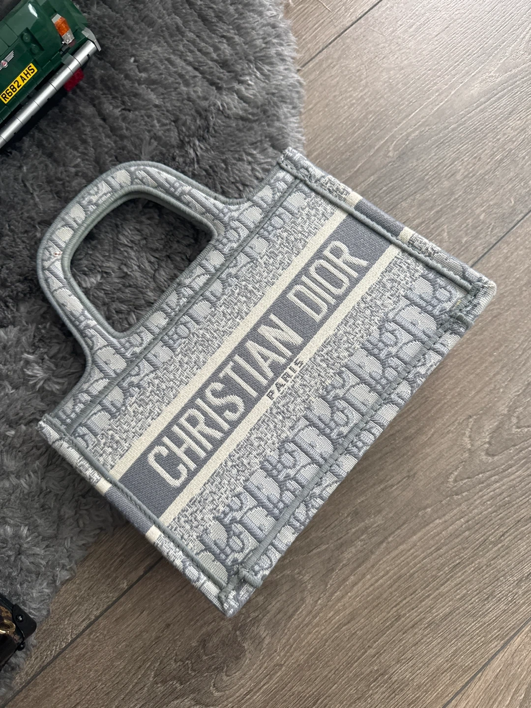 Selling a cute Christian Dior mini book tote bag! It's in great condition and perfect for carrying your essentials. The iconic Dior Oblique pattern in grey is super stylish and will add a touch of luxury to any outfit