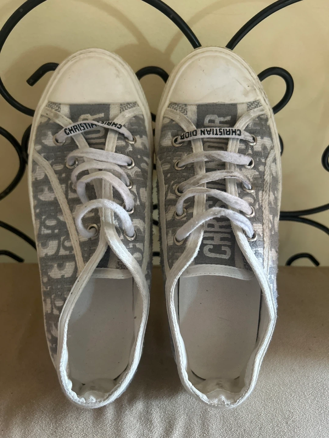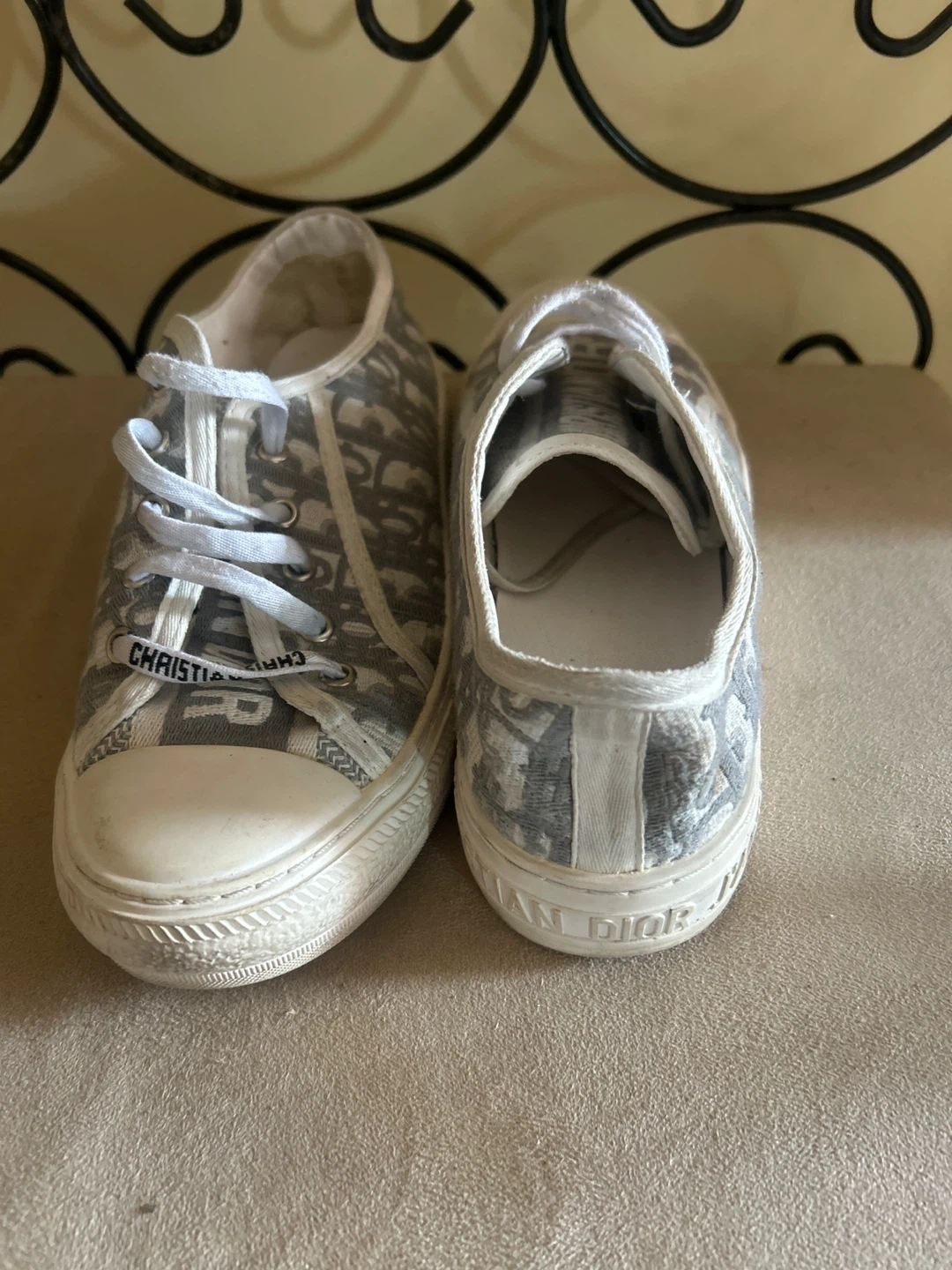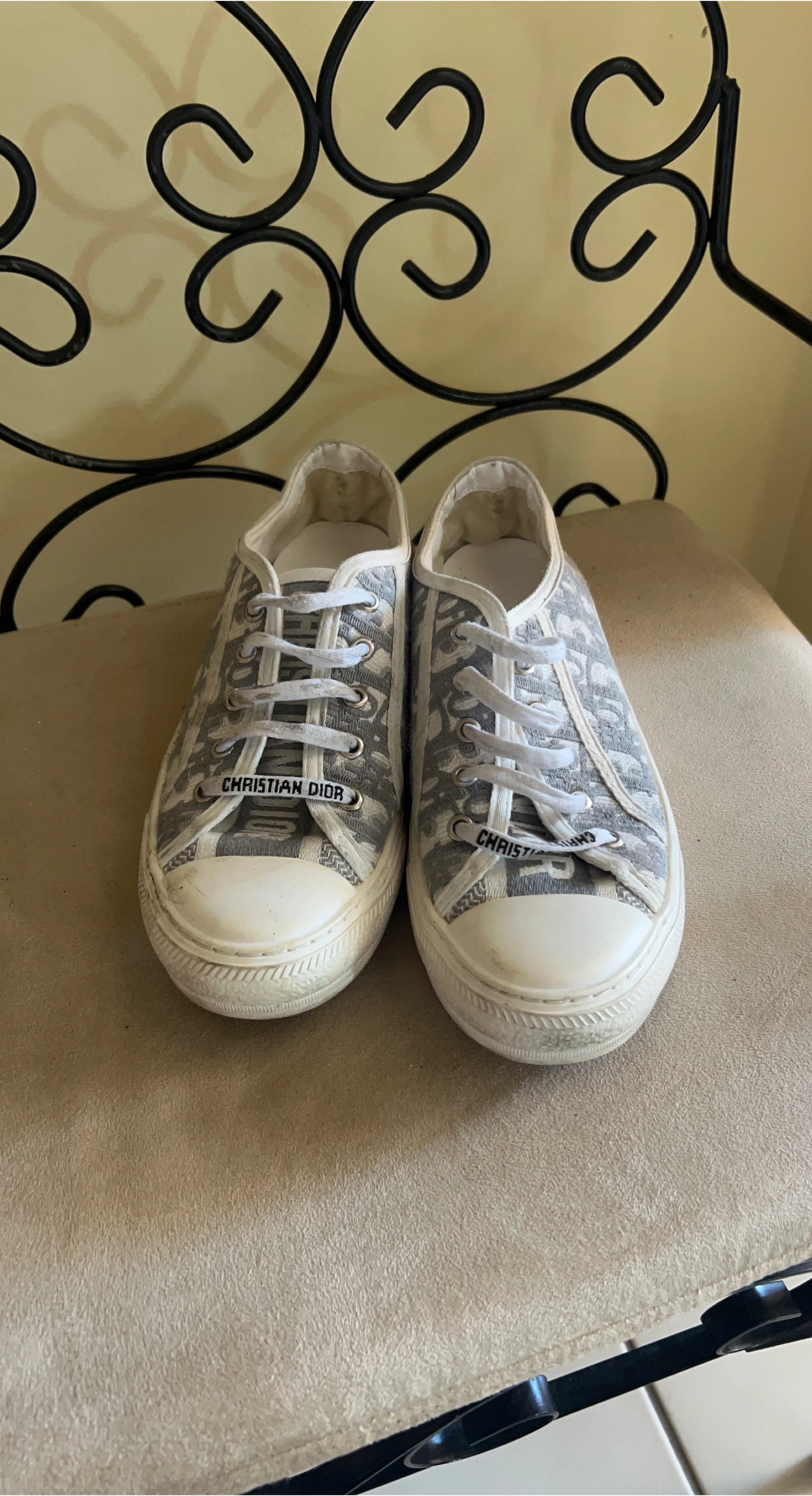 Selling a pair of Christian Dior Oblique sneakers. They're in good condition and have a stylish pattern. Perfect for adding a touch of luxury to your everyday look!