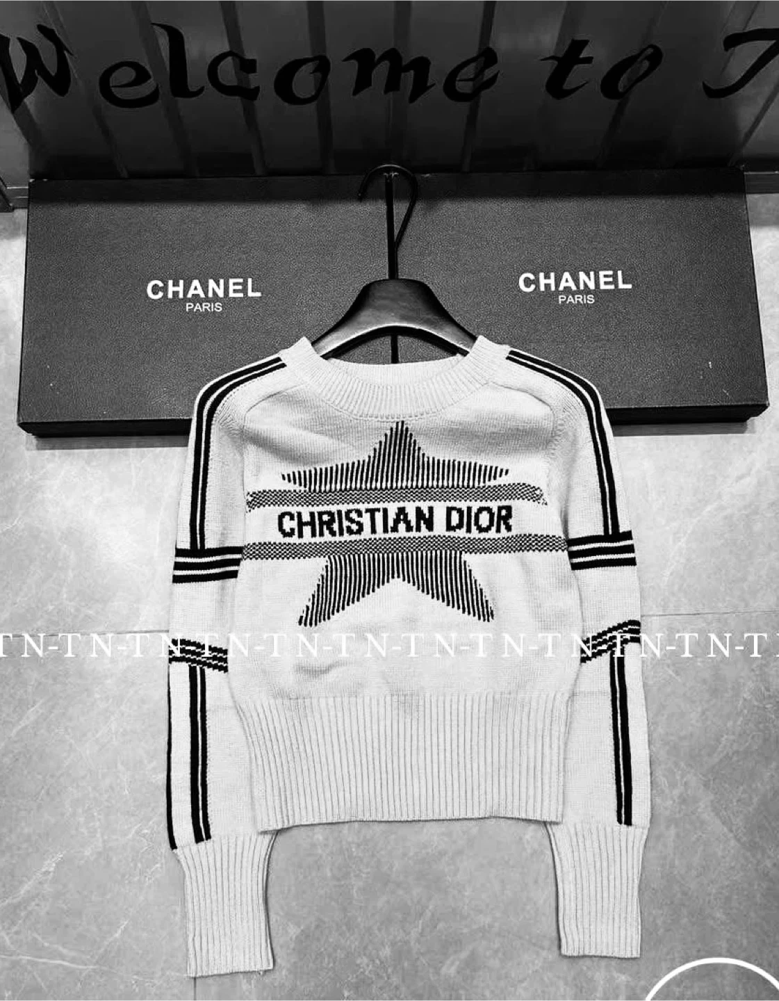 Selling a Christian Dior sweater with a star design. It features black stripes on the sleeves and the Christian Dior logo across the chest. Perfect for adding a touch of luxury to your wardrobe! 65$ off 49$ pick up only thanks
