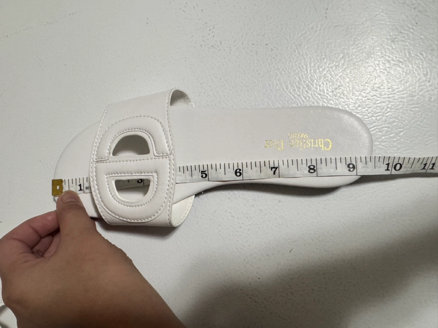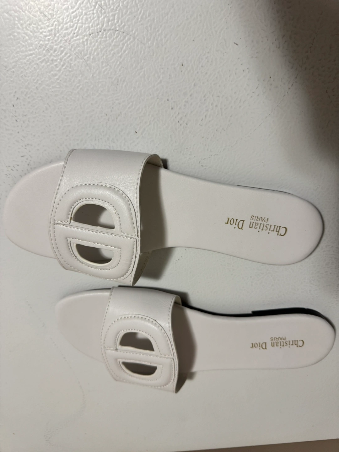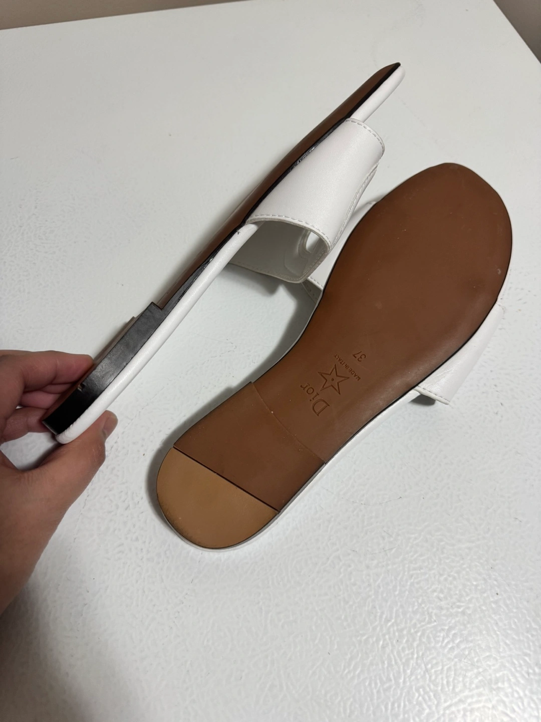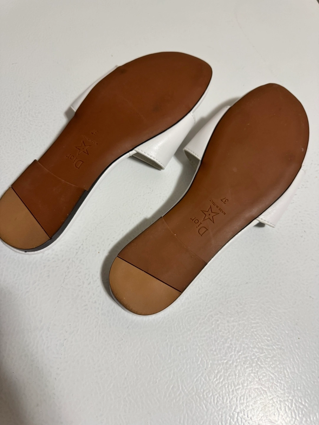 White leather slides. Size 37. Dior logo on insole and sole. Minimal wear.