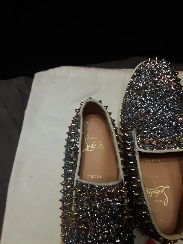 Selling a pair of Christian Louboutin slip-on sneakers! These are a real statement piece with their glittery finish and spike detailing. They're a European size 43. Comes with the original dust bag!