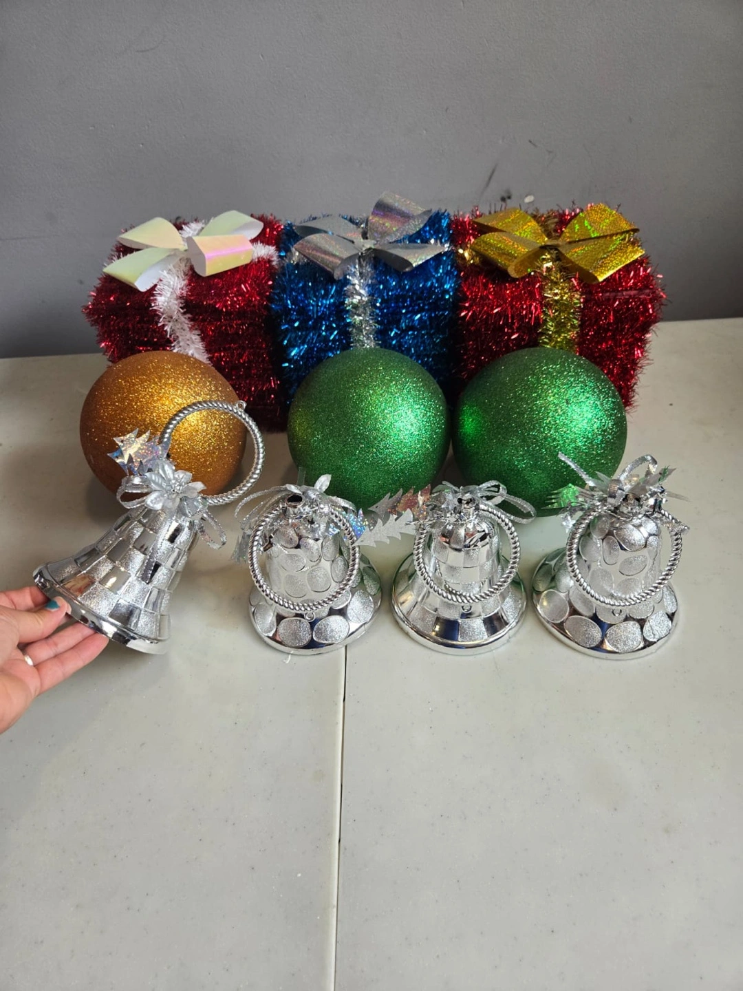 Selling various Christmas decorations to brighten up your home this holiday season! Includes ornaments, bells, and decorative poinsettia candle holders. Perfect for adding a festive touch to any room