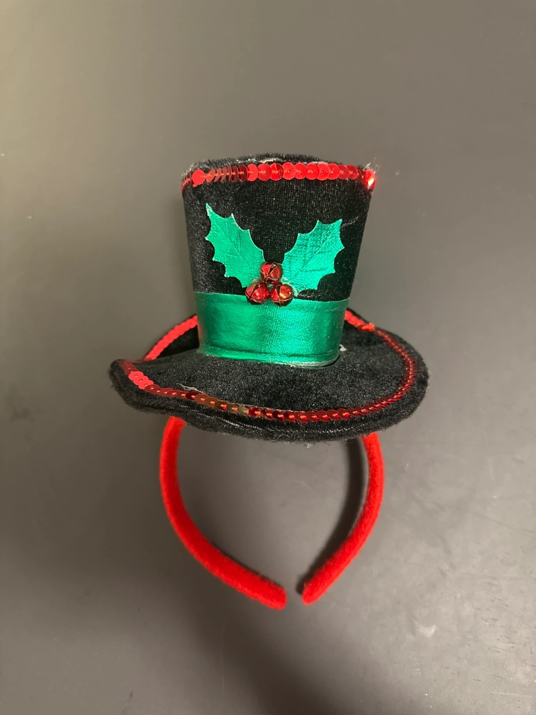 Get into the festive spirit with this adorable Christmas top hat headband! It features a classic black top hat design with a green ribbon, holly leaves, and red berries. The red headband is soft and comfortable, making it perfect for holiday parties or just adding a touch of cheer to your day