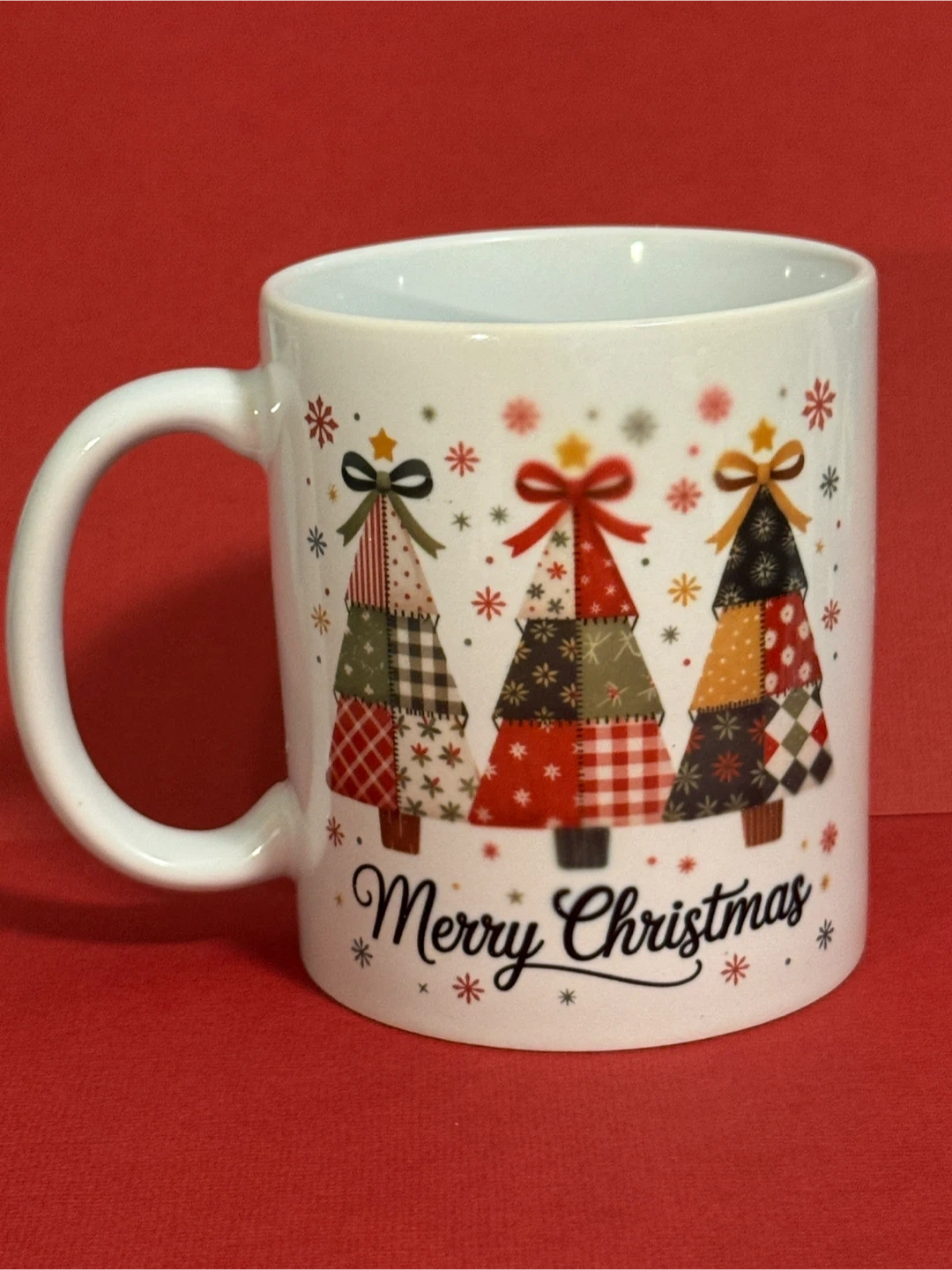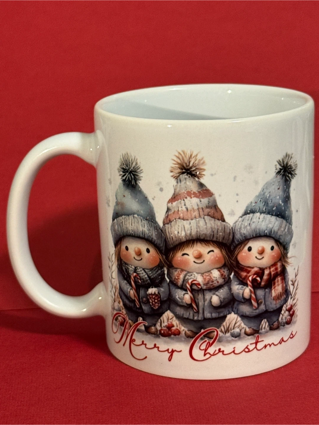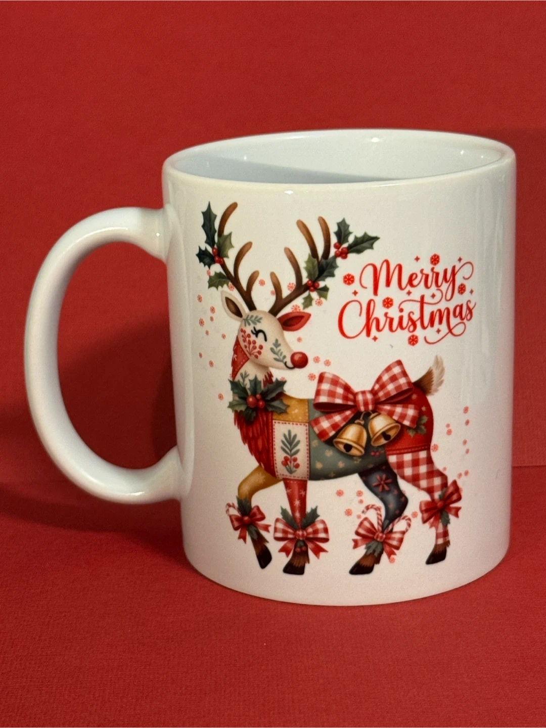 Cute festive mug! Size: 12 oz. It says "Merry Christmas" on one side, and the other side can be personalized with a name. Names in the pictures are just examples.