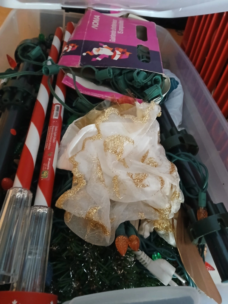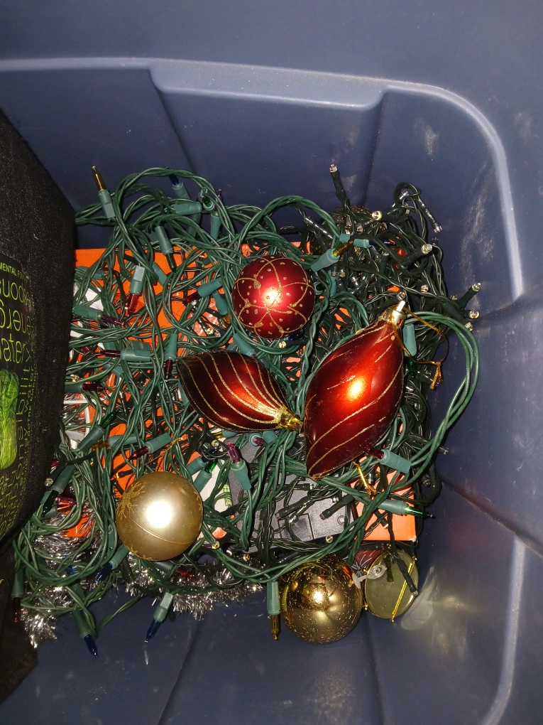 🏠Pickup by Dufferin & Eglinton Disassembled Christmas tree. About 6 feet tall or so. Christmas decor like balls to put on the tree, lights, and more! Want the nativity scene items as well? We can add them on for a price! Please bring a box or bags as we'd like to keep these reusable boxes :)