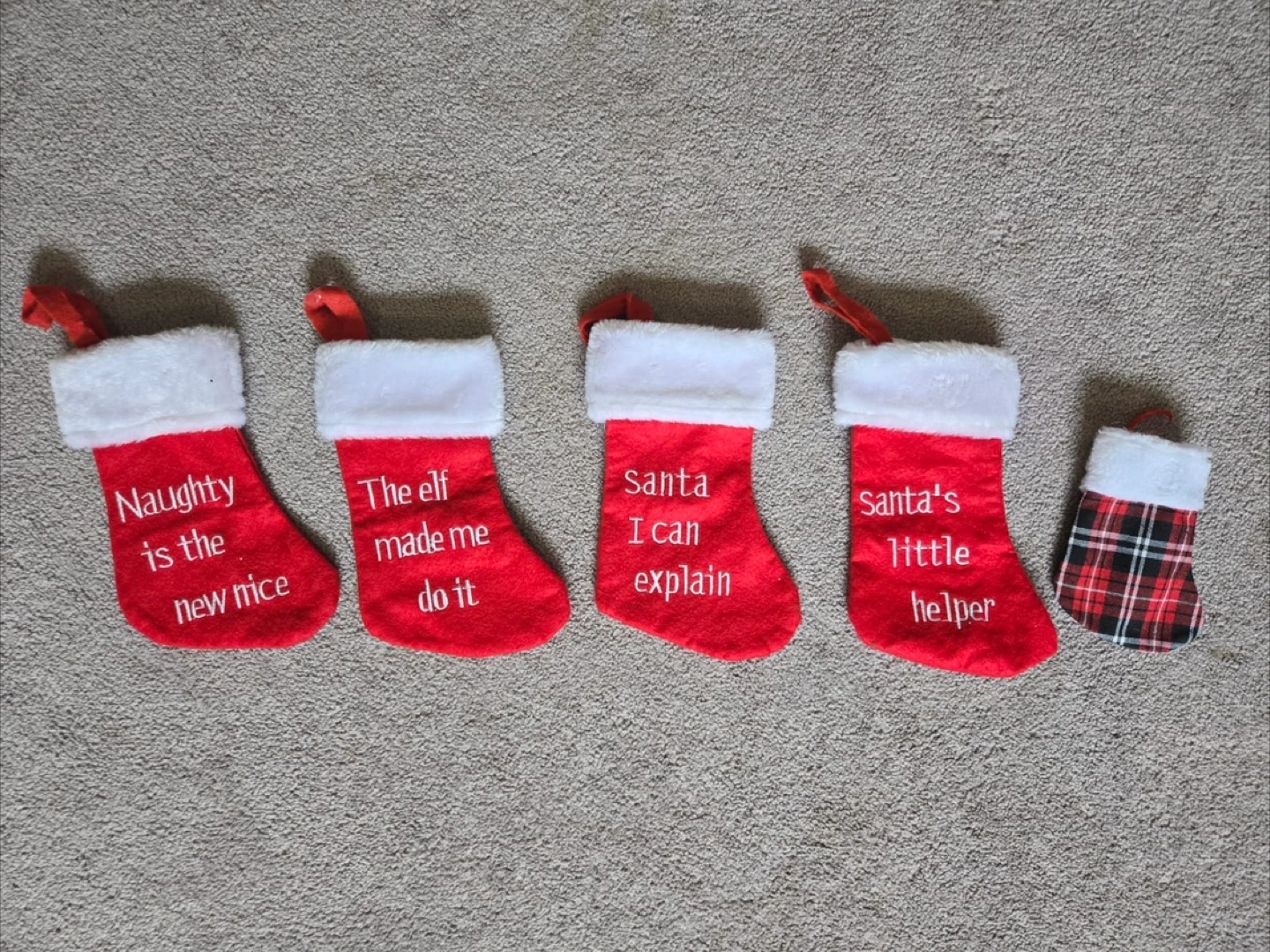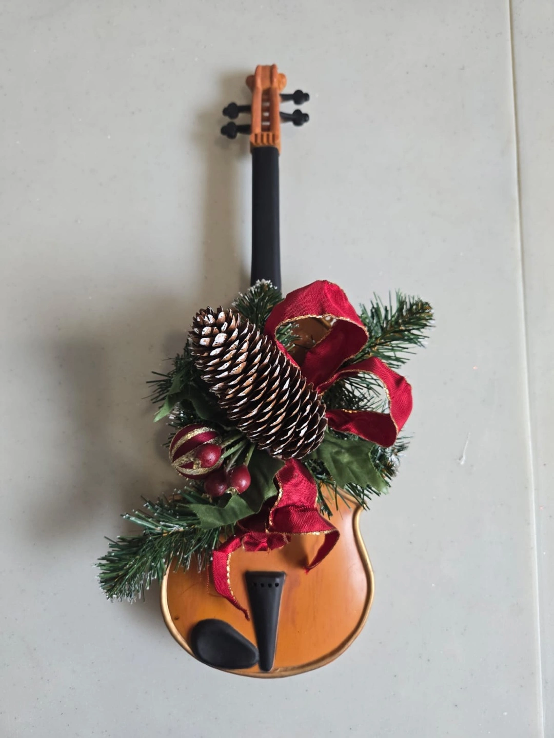 Selling a collection of Christmas decorations! Includes a tree skirt, a violin wall decor, a Santa hat, and some Christmas stockings. Perfect to get your home ready for the holidays