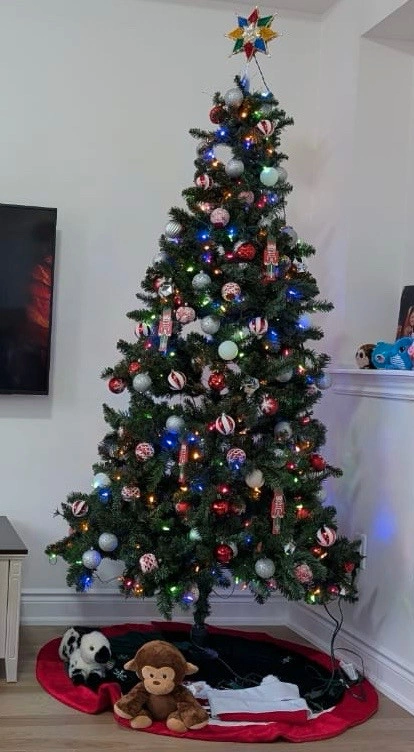 Christmas tree - in box Along with decorative balls (100) - in box There are extra items for decoration - socks, round cloth under the tree, star on the top etc - if needed with some extra price Only used once Pet free and smoke free home For Sale By: Owner