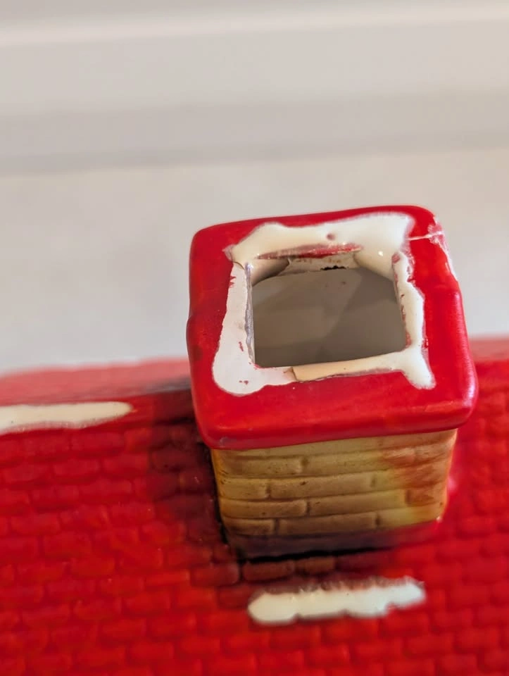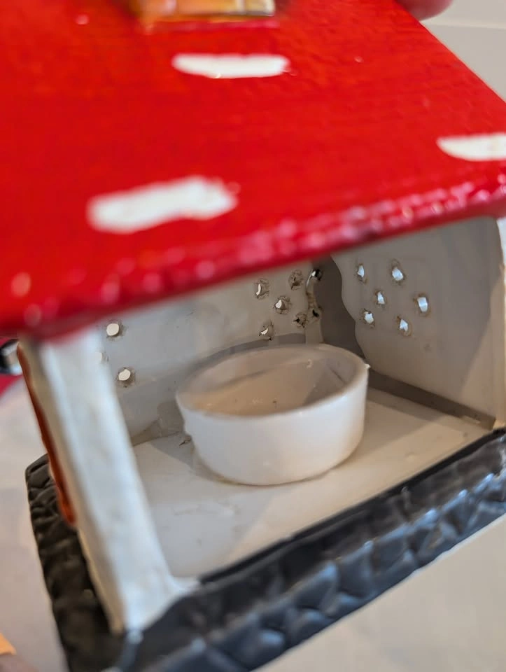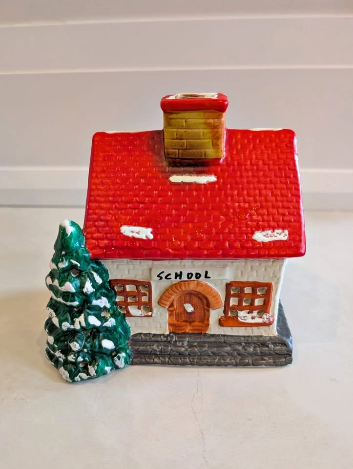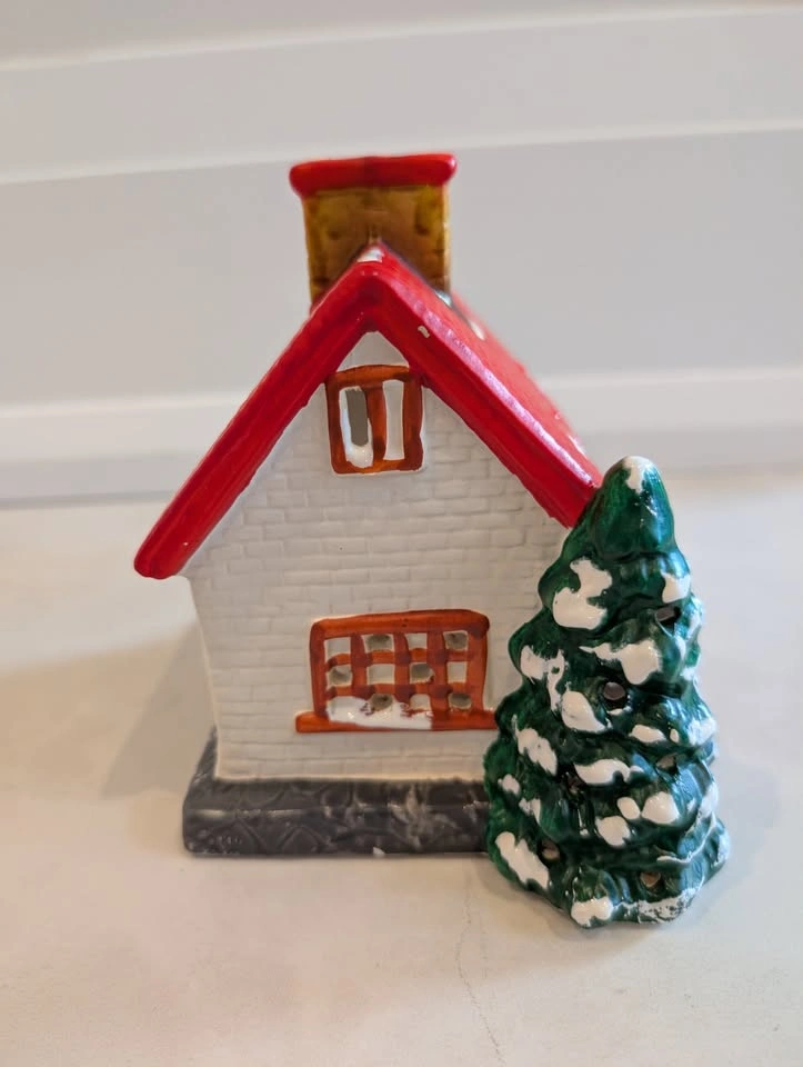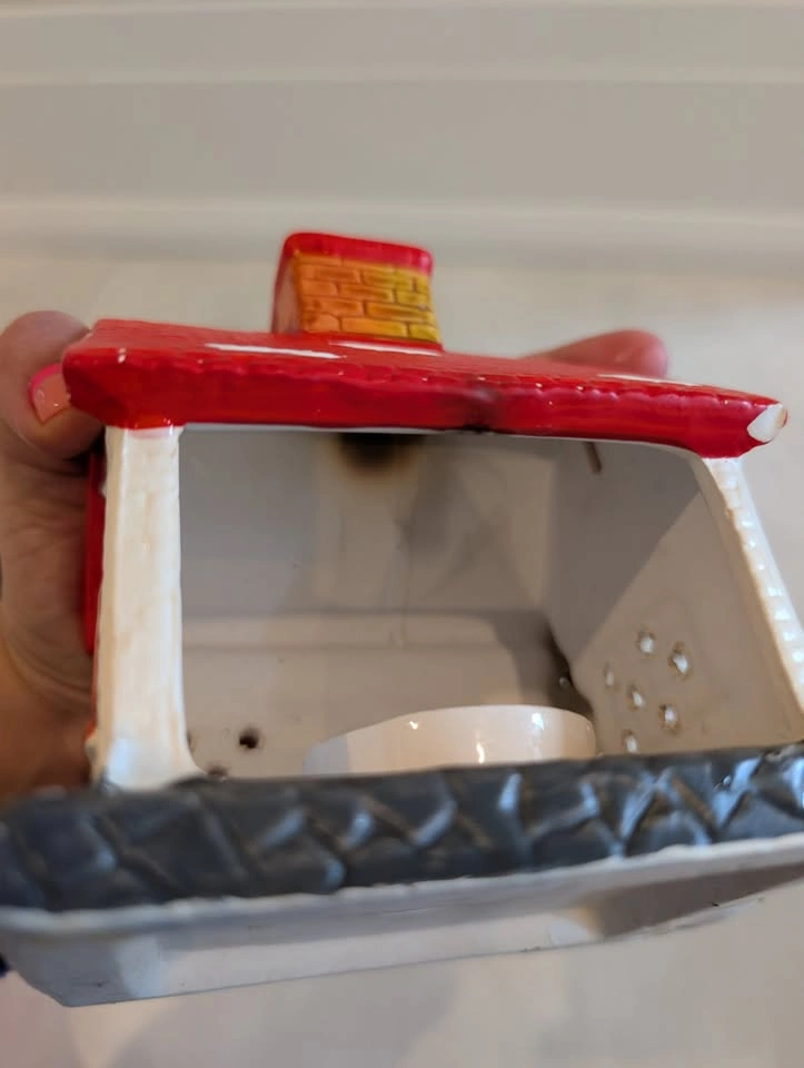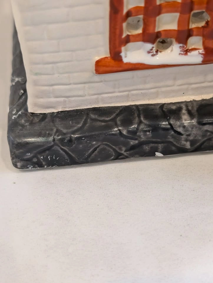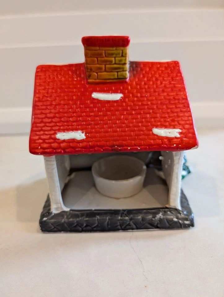 Please note: this item has been used. There is left over wax and burn marks from old tealights. There is also some wear to the building including chipped painting.