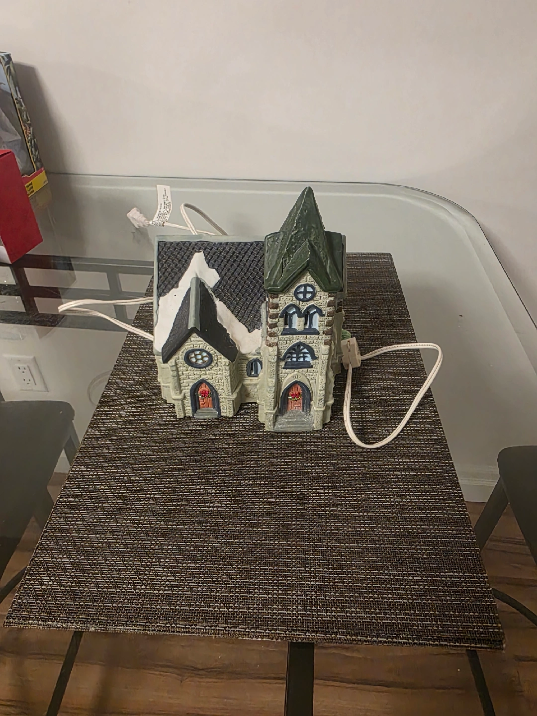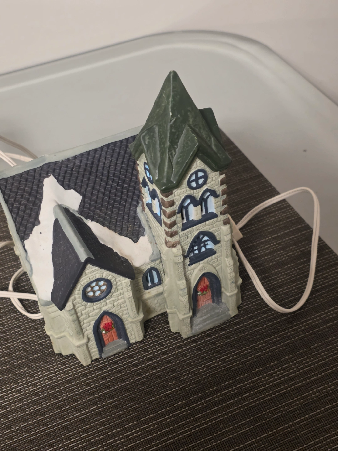 Cute Christmas village church with a light inside to make it glow! Perfect for your Christmas decorations