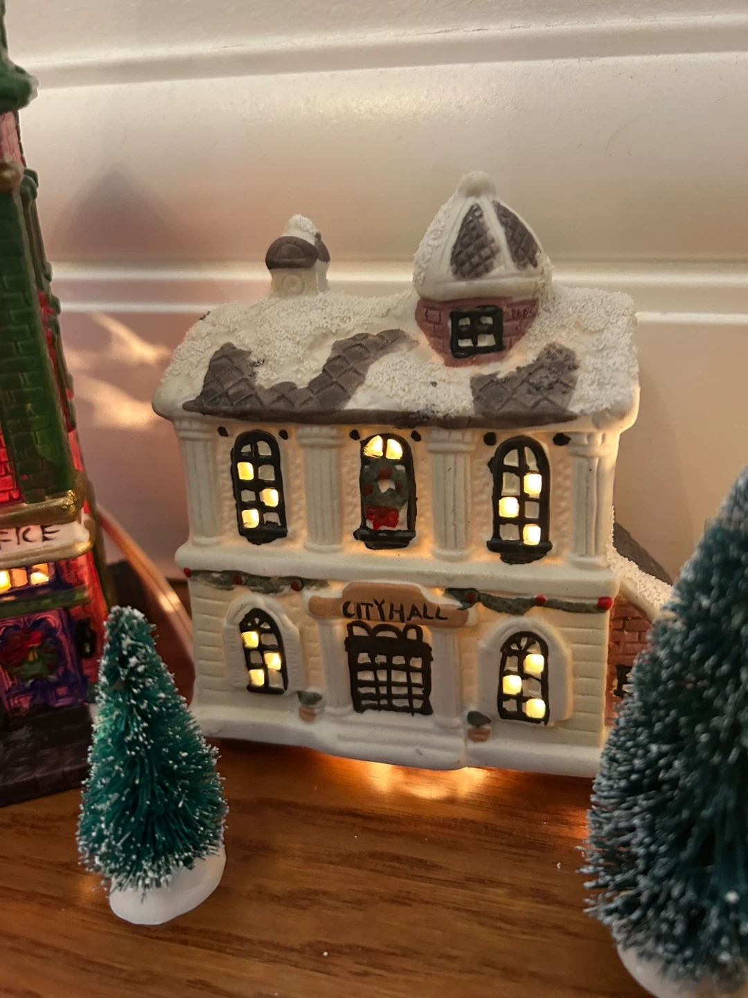 Selling a set of Christmas village lighted buildings. They're in great shape and would be a lovely addition to your holiday decorations. Boxes included. Vintage Hudson’s Bay set of 3 buildings included. Highest building is 6 inches tall. It’s a smaller village but in very good shape.