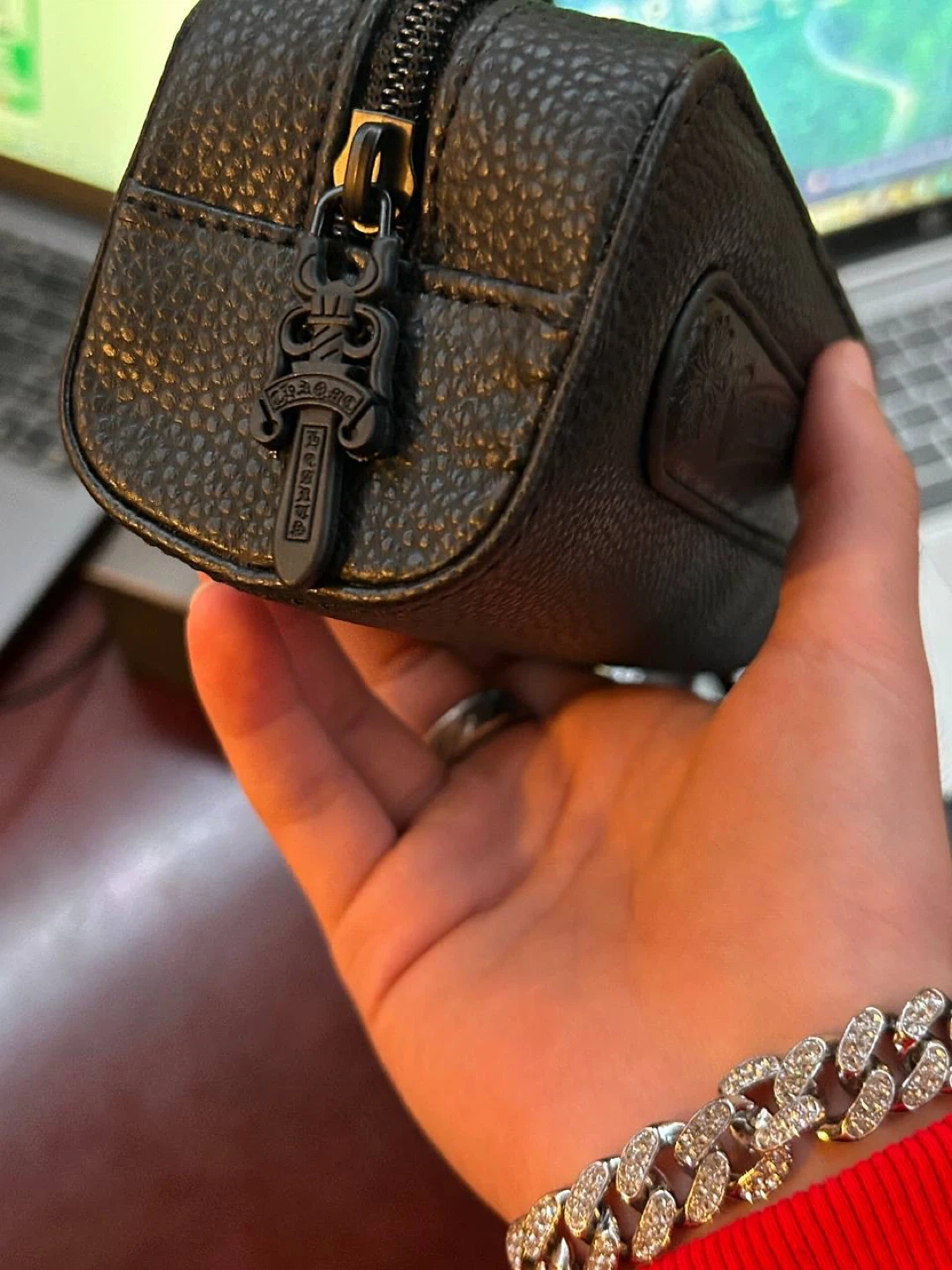 Selling a Chrome Hearts black leather pouch. It comes with its original box. 1:1