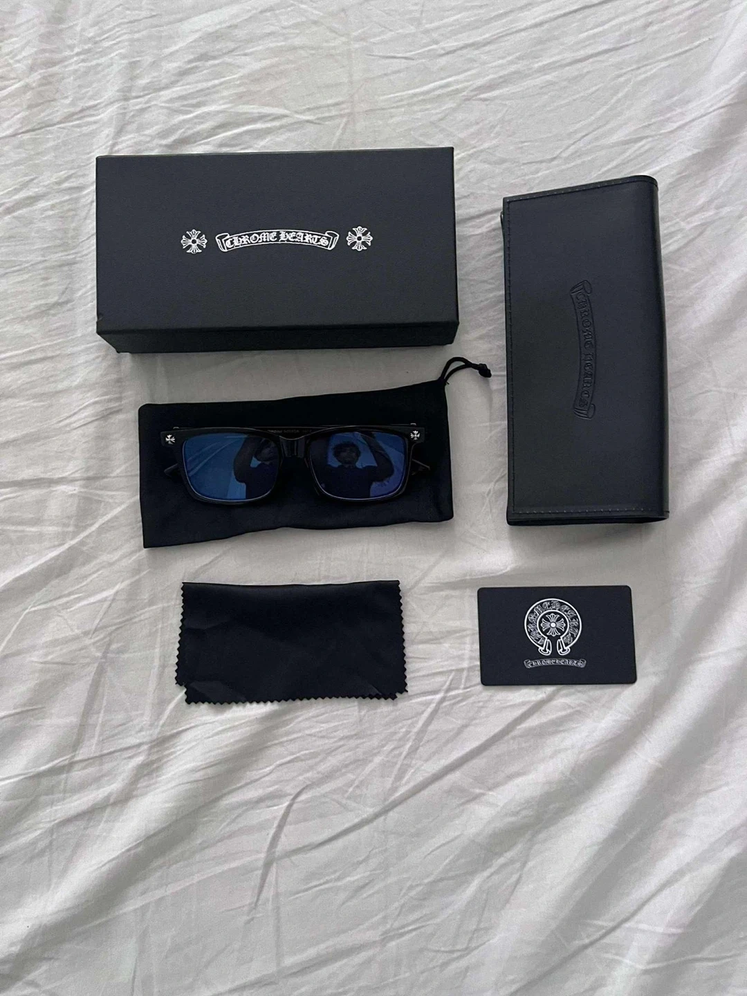 Selling a pair of Chrome Hearts eyeglasses! They come with the original box, a case, and a cleaning cloth. These glasses are brand new and ready for a new home. Feel free to ask any questions!