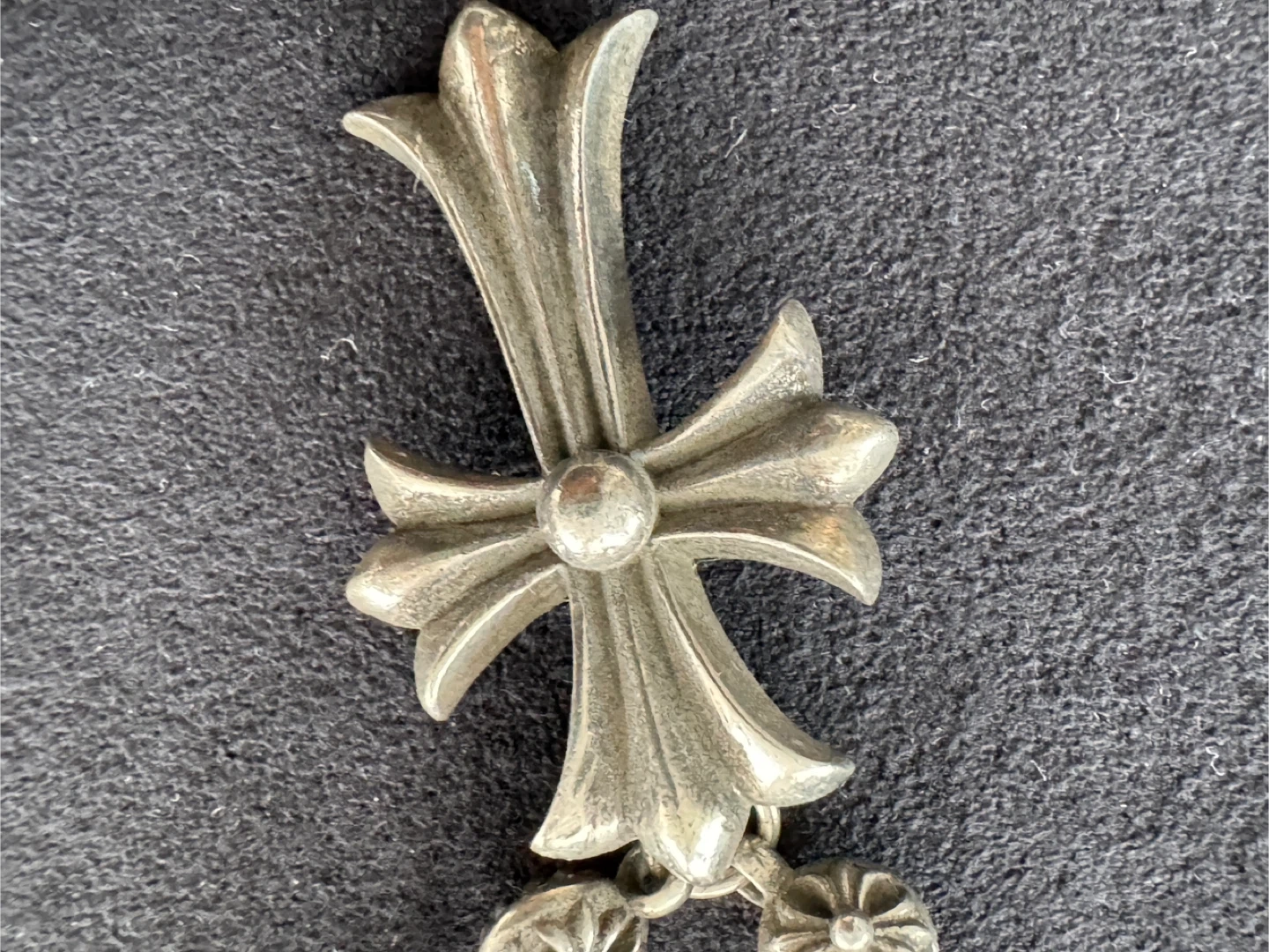 Selling a Chrome Hearts cross pendant made of sterling silver. It's in great condition and has the 1991 copyright mark. A stylish accessory to add to your collection!