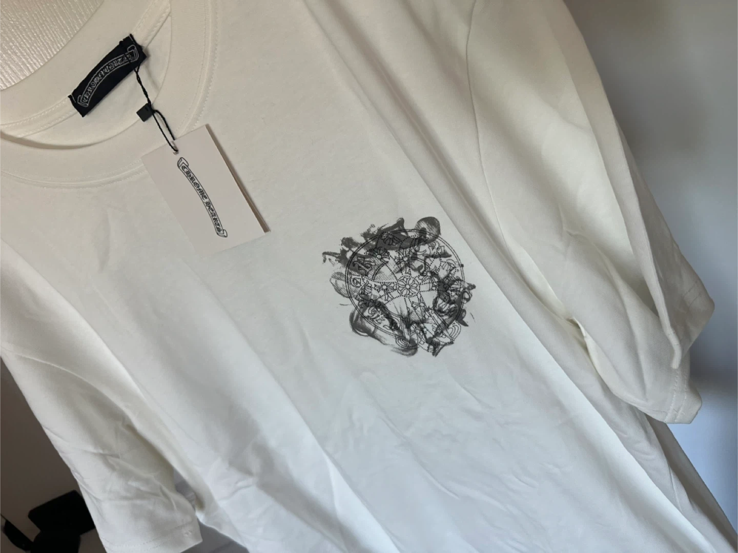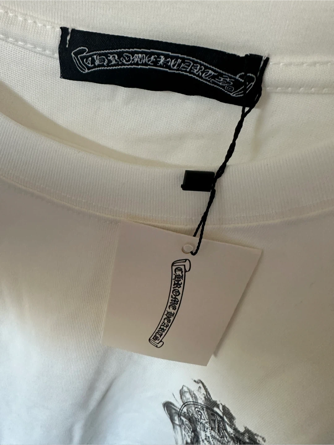 Selling a Chrome Hearts t-shirt in white. It features a cool graphic design on the front. Great for casual wear!