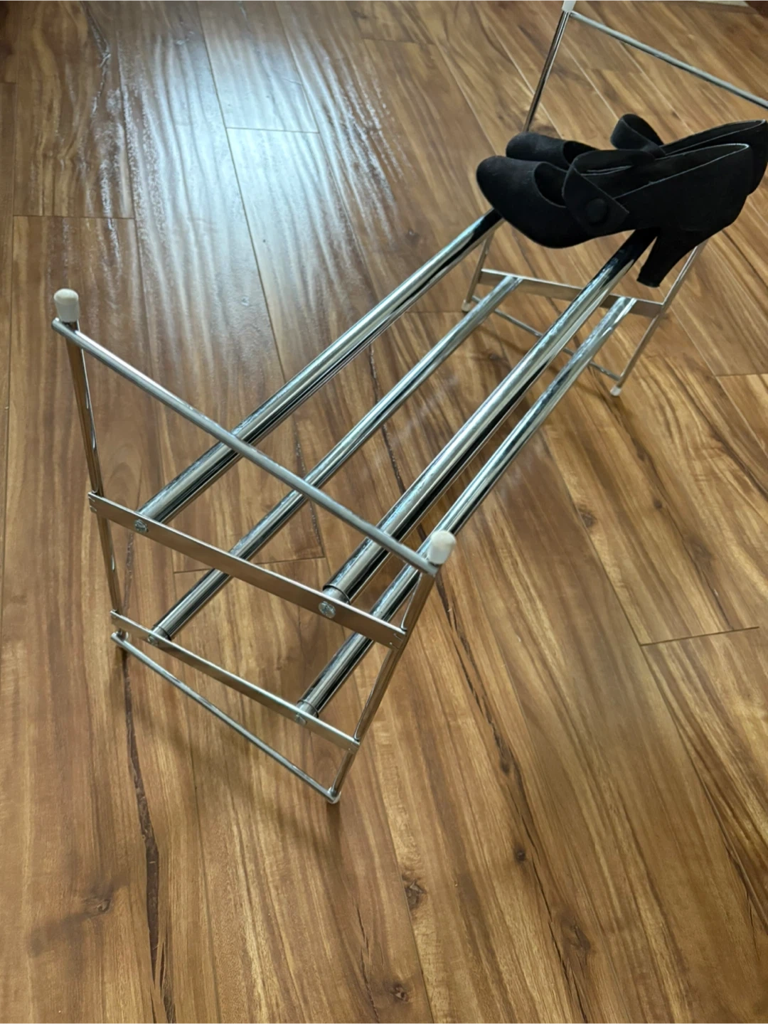 Selling a handy chrome shoe rack! It's in great shape and ready to organize your high heels footwear. Perfect for keeping your entryway tidy and your shoes easily accessible. Fits up to 10 pairs of shoes. Adjustable width of the shoe rack. Pick up in Confederetion mall or Kensington area.