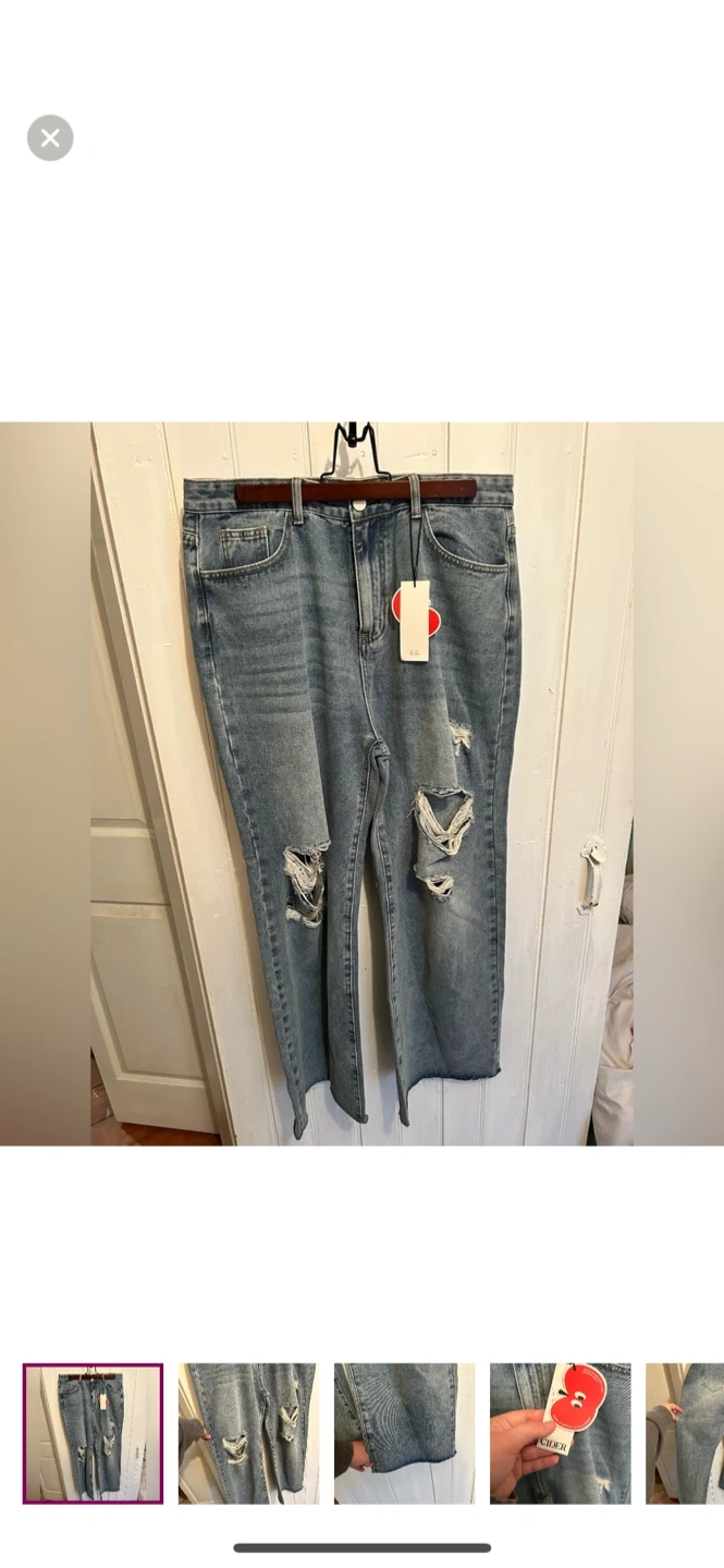 Cider bRand. Straight baggy leg distressed jeans. Light wash denim. Size xl. Brand new with tags $30 Pickup between kincardine & ripley or I can arrange delivery in port Elgin-Owen sound, walkerton-Durham, wingham-listowel-kw/cambridge, goderich-bayfield, Woodstock & Arthur-Orangeville-Newmarket-Lindsay-Peterborough AREAS.