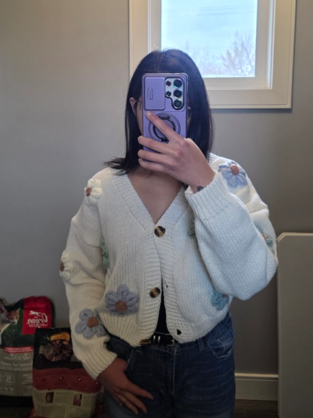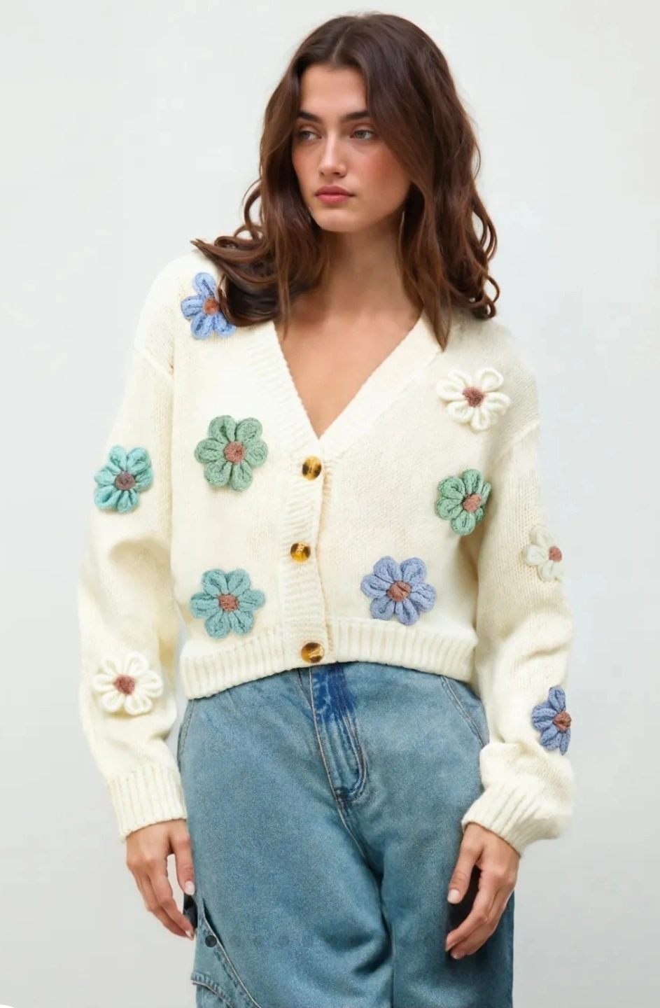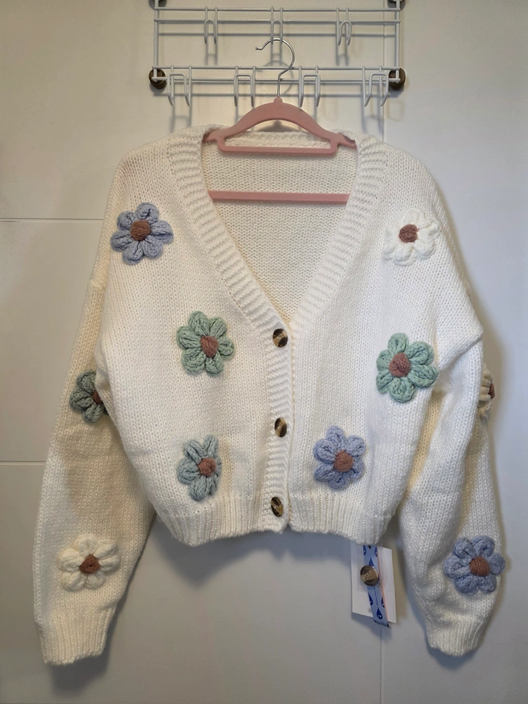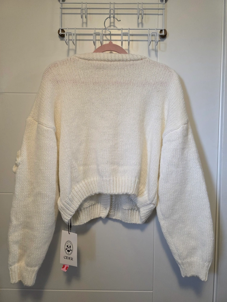 Cozy cardigan from Cider with 3D flower embellishments. Never worn and tags are still attached. Selling because the fit is oversized and it's too baggy for my taste. Size: S Material: 100% Polyester It is very cozy, soft and warm. Perfect for winter. Bought for $40.
