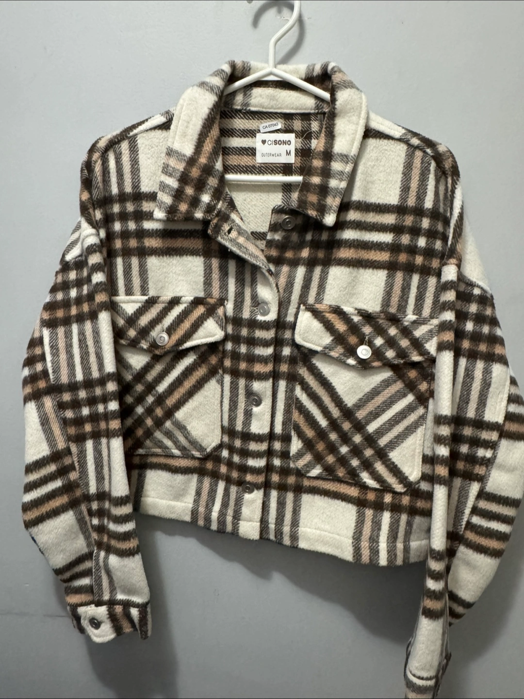 Cozy CISONO outerwear in a stylish plaid pattern! This shacket is a size medium and perfect for layering in the fall • pick up on 49th and victoria • check out my other listings for a bundle!