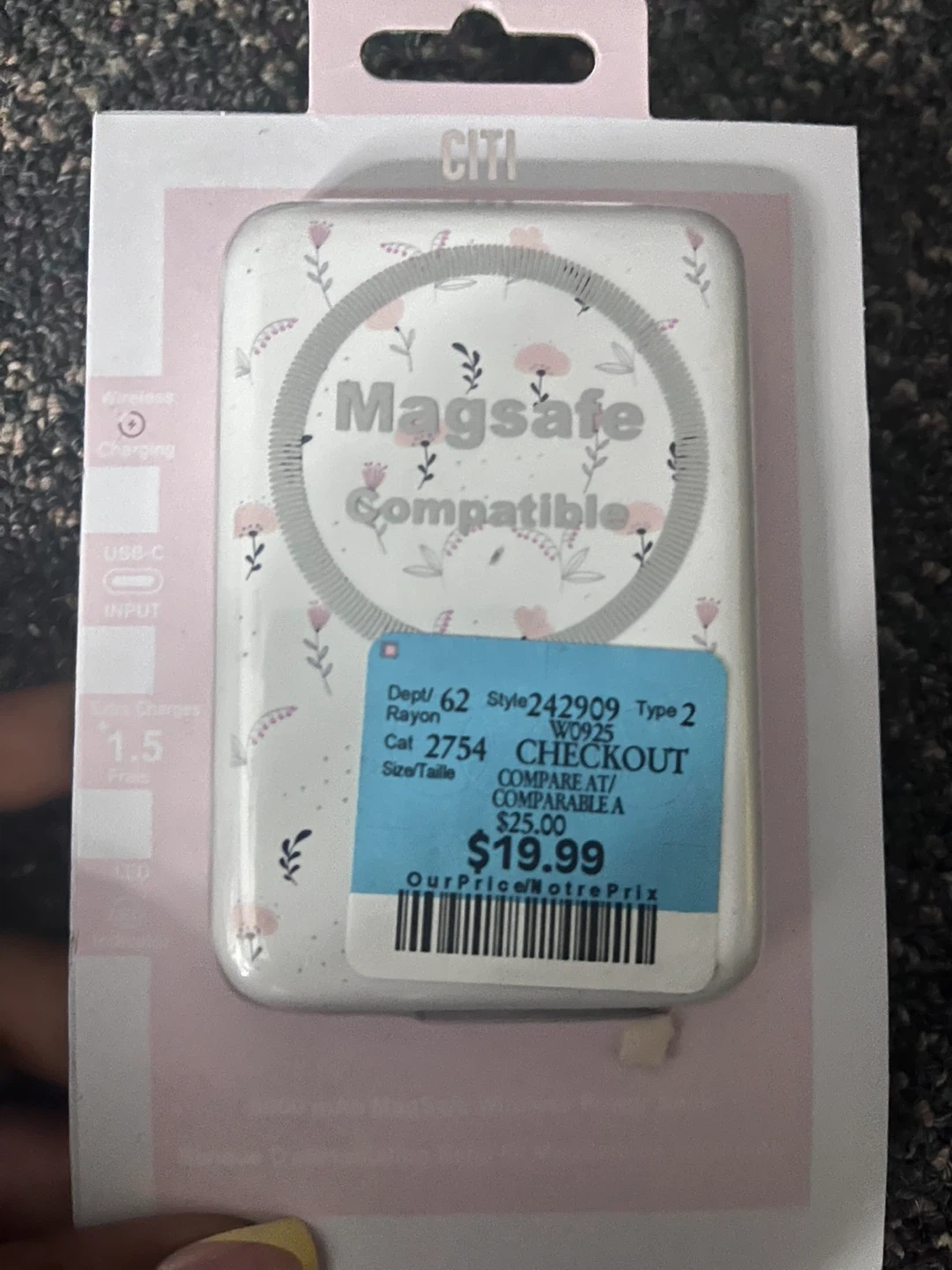 Selling a brand new CITI MagSafe compatible wireless power bank! It's still in its original packaging. This power bank is perfect for on-the-go charging and is compatible with MagSafe devices. It was originally priced at $19.99.