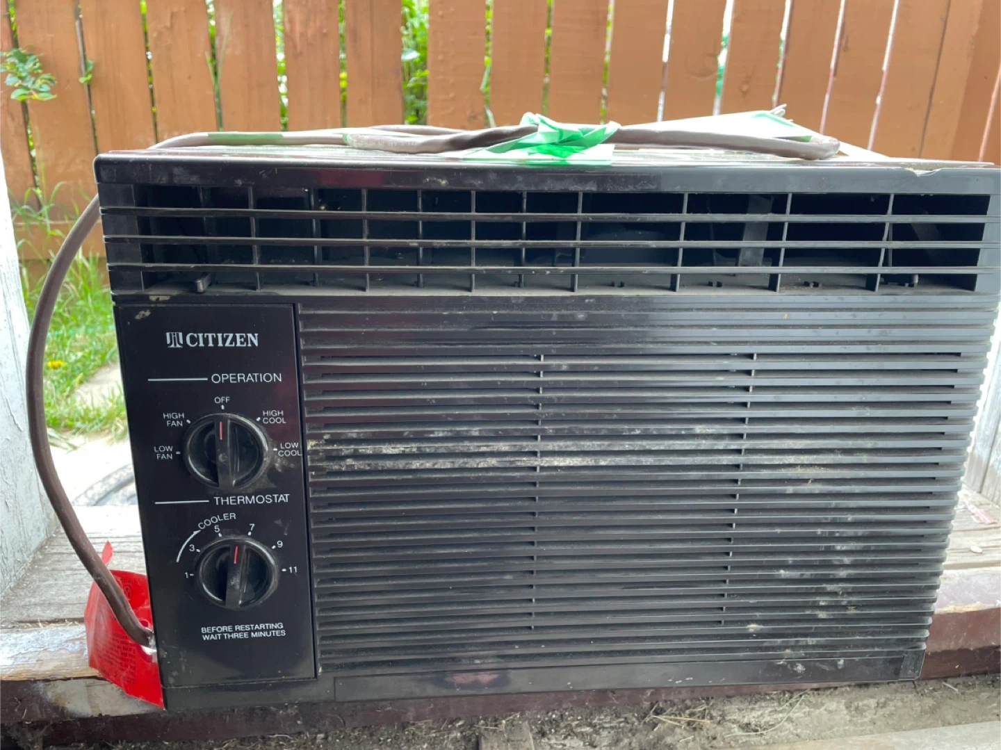 Selling a Citizen window air conditioner. It has settings for high and low fan, as well as high and low cool. The thermostat can be adjusted for cooler settings. Please wait three minutes before restarting