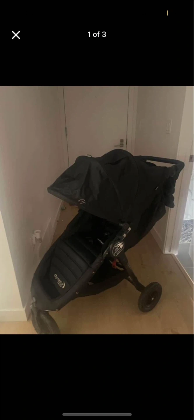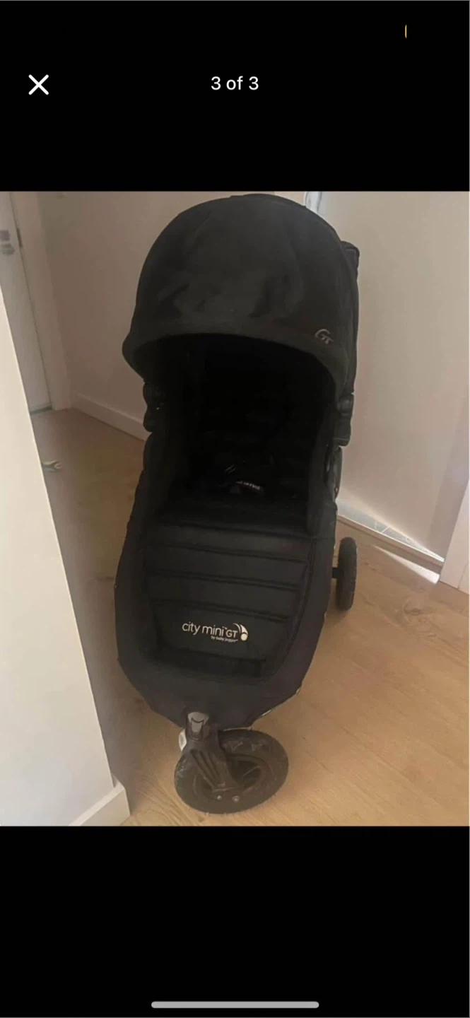 Selling a City Mini GT baby jogger in black. It's in great shape FOLD: Lift a strap with one hand and the City Mini GT folds itself: simply and compactly. It really is as easy as it sounds. And the auto-lock will lock the fold for transportation or storage. SEAT: This seat was built for comfort. It reclines to a near flat position with vents and a retractable weather cover to make sure that your child is comfortable and safe while you stroll. WHEELS: The City Mini GT offers an All-Terrain wheels that can go from the city to the country. The All-Terrain wheels and front wheel suspension work in unison to give you full control on where and how you go while keeping your little one comfortable. HANDLEBAR & BRAKE: An adjustable handlebar adjusts to your height and a hand-operated parking brake keeps all the controls within reach. CANOPY: SPF 50+ sun canopy can open to multiple positions. It even has two peek-a-boo windows so you can keep an eye on your precious cargo.