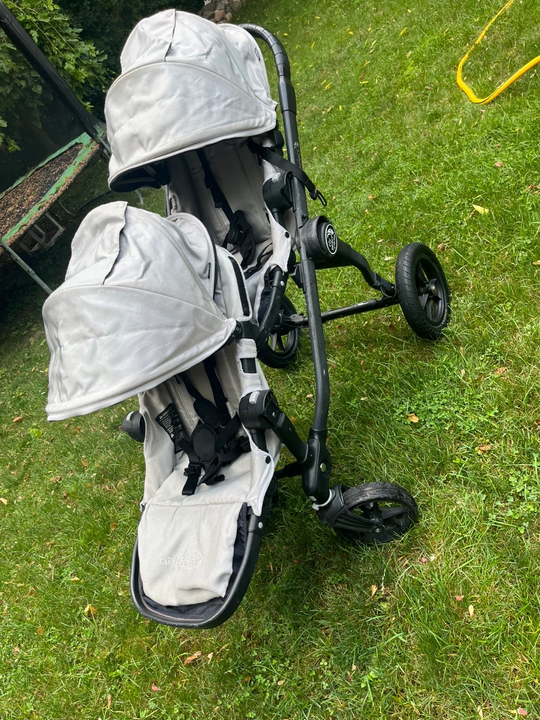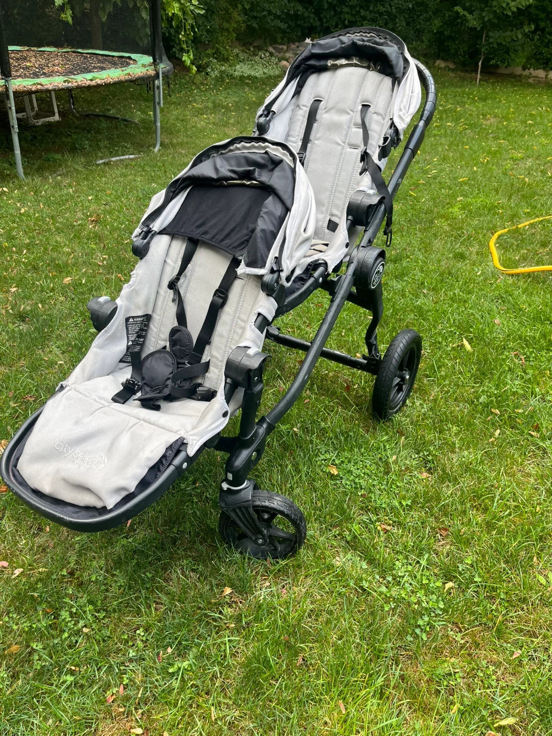 Selling a City Select double stroller in grey! It's in great condition and ready for a new family. Perfect for walks around the neighbourhood or trips to the park. This stroller is super versatile and can be configured in multiple ways to suit your needs