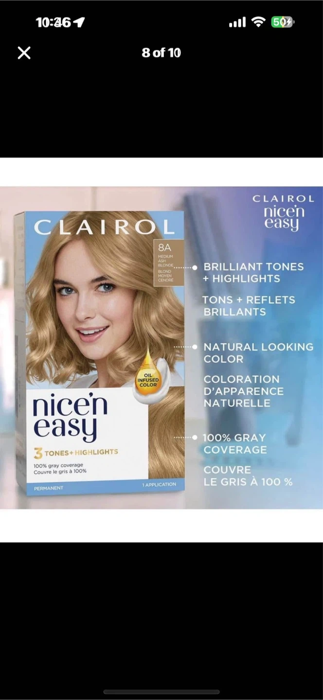 Selling a Clairol Nice'n Easy hair dye in shade 8A, Medium Ash Blonde. It's designed with 3 tones and highlights for 100% gray coverage. This is a permanent hair colour and includes an oil-infused colour. Selling brand new boxes of Clairol Nice'n Easy Permanent Hair Colour - 8A Medium Ash Blonde for just $8 each. I have a few available - all sealed and unused! V Product Highlights: 3 Tones + Highlights for natural-looking colour Oil-infused for brilliant shine and softness 100% gray coverage Permanent hair dye - 1 application per box Great for a cool, soft blonde look •- Pickup in Maple Ridge Message me if interested - first come, first served!