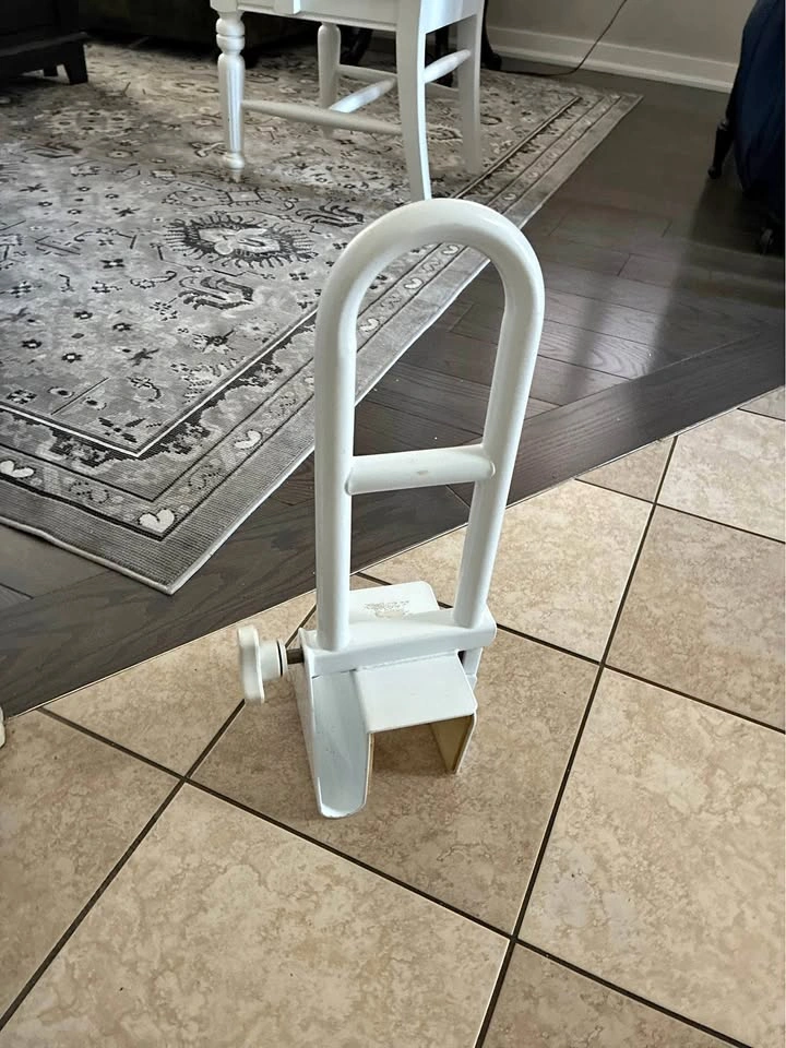 GUC Durable, white powder-coated steel construction is attractive and easy-to-clean. Stainless steel locking mechanism and non-wearing rubber pads provide scratch proof security. Handle design provides secure hand position.