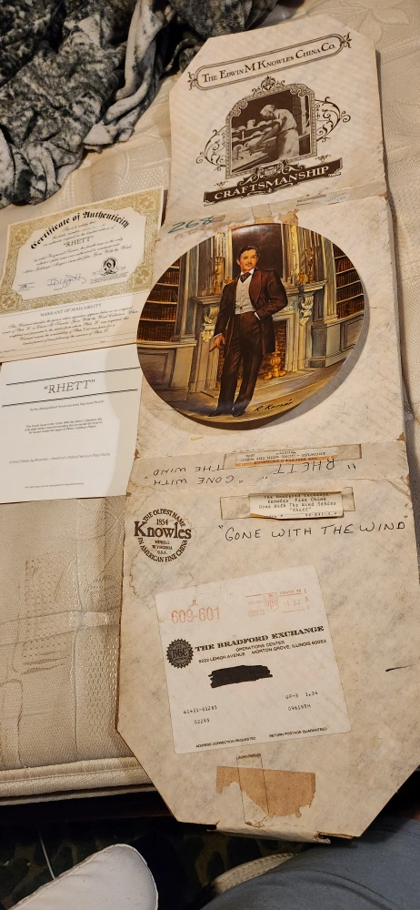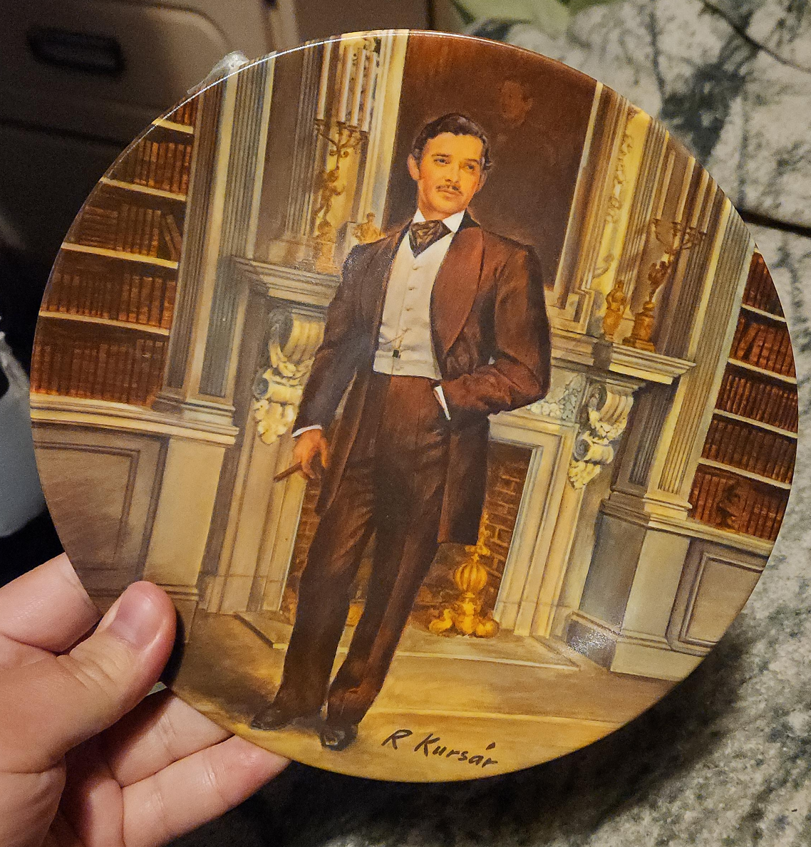 Selling a collector plate featuring Clark Gable. It appears to be signed by 'R. Kursar'. A lovely piece for any fan!