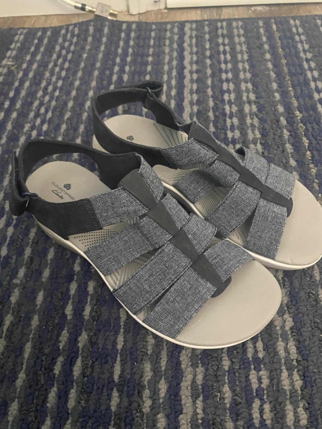 Selling a pair of Clarks Arla Glison sandals in size 7. They're super comfy and perfect for summer! The sandals feature a stylish woven design and adjustable straps for a custom fit. Great for everyday wear!