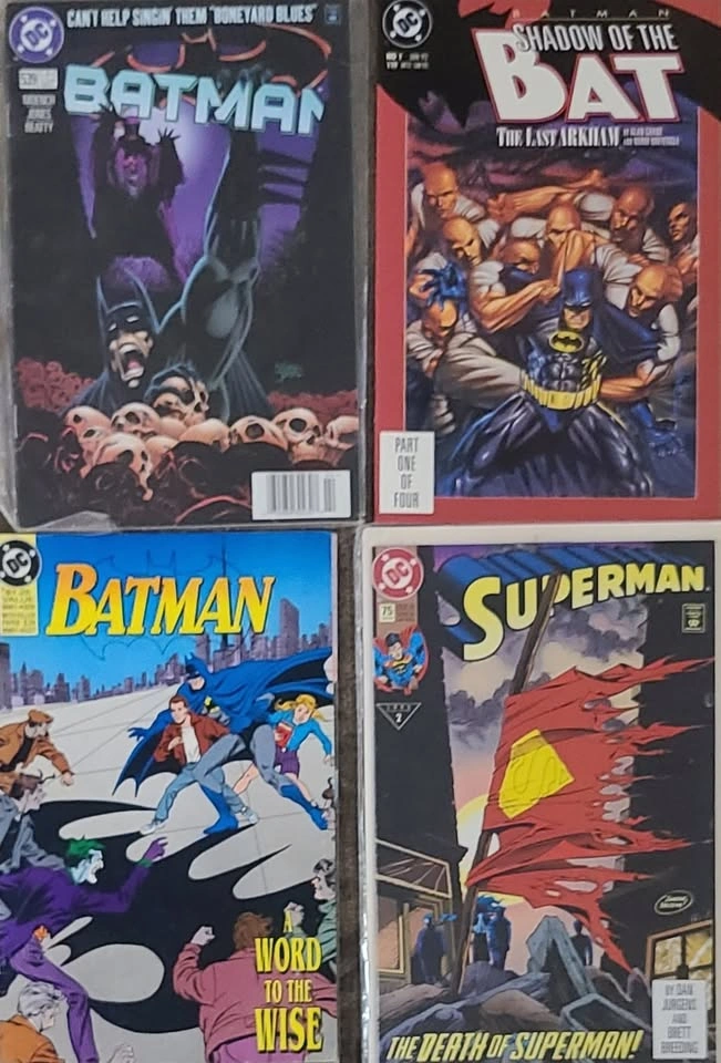 Selling a collection of classic Batman comic books. Most books are in bags and boards and in great condition. The bundle includes the following issues: Batman: Legends of the Dark Knight #1-10, #13, #16-20, #28, & Annual #1 Batman (Vol. 1) #415, #433 (x2) #434, #435 (x2), #438, #441-445, #499, #500, #539 Batman: Shadow of the Bat #1 (1st app of Zsasz & Jeremiah Arkham) Batman (Zellers special) (Bonus comic!) Superman #75 (iconic 'the death of Superman' cover)